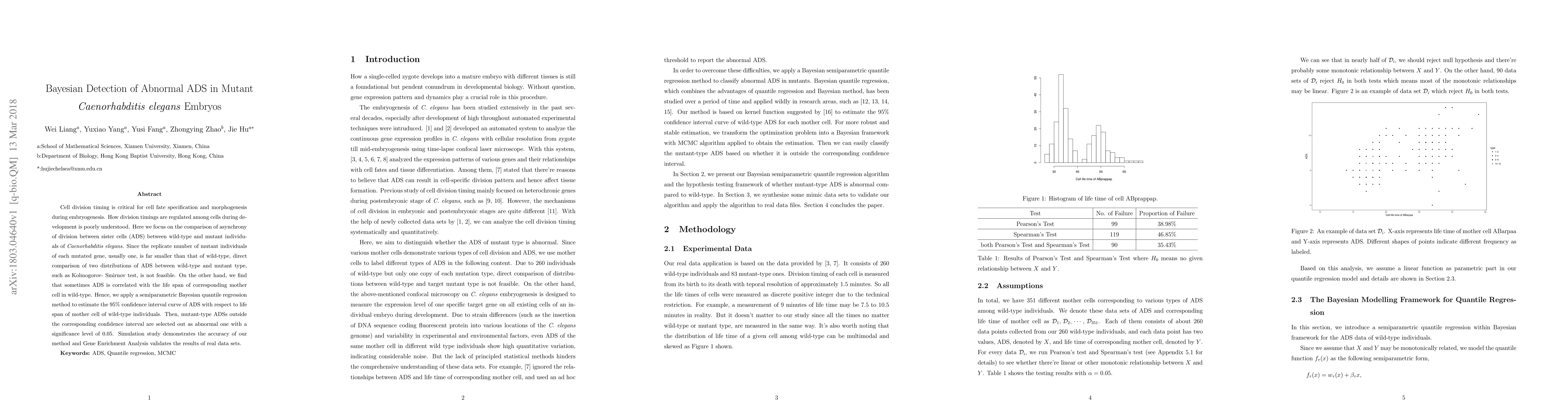 Researchers used Bayesian quantile regression to identify abnormal cell division patterns in mutant Caenorhabditis elegans embryos, finding correlations between these patterns and the life span of their mothers.