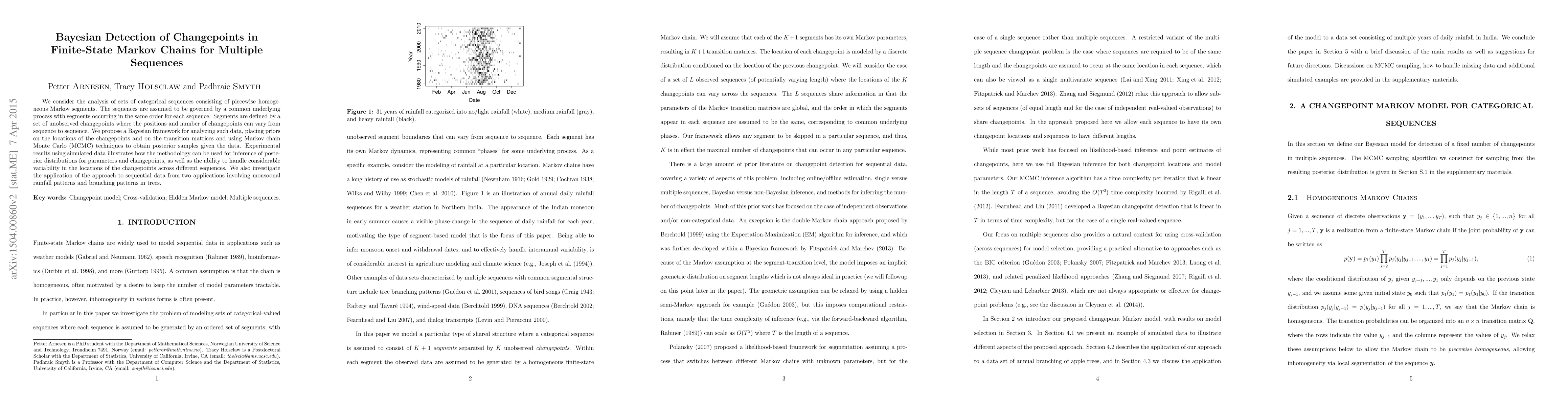 A Bayesian framework is proposed to detect changepoints in finite-state Markov chains for multiple sequences, enabling the inference of posterior distributions for parameters and changepoints with high variability across sequences.