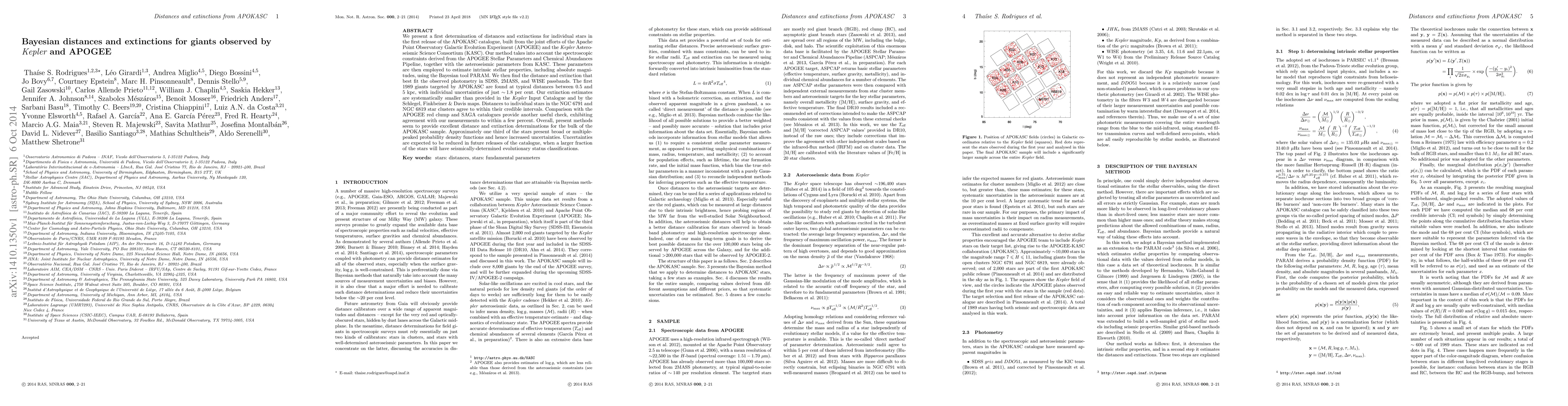 This paper presents a Bayesian method to determine distances and extinctions for 1989 giant stars in the APOKASC catalogue, combining APOGEE spectroscopy and Kepler asteroseismic data. The method yields distances with ~1.8% uncertainty and finds extinctions systematically lower than previous estimates.