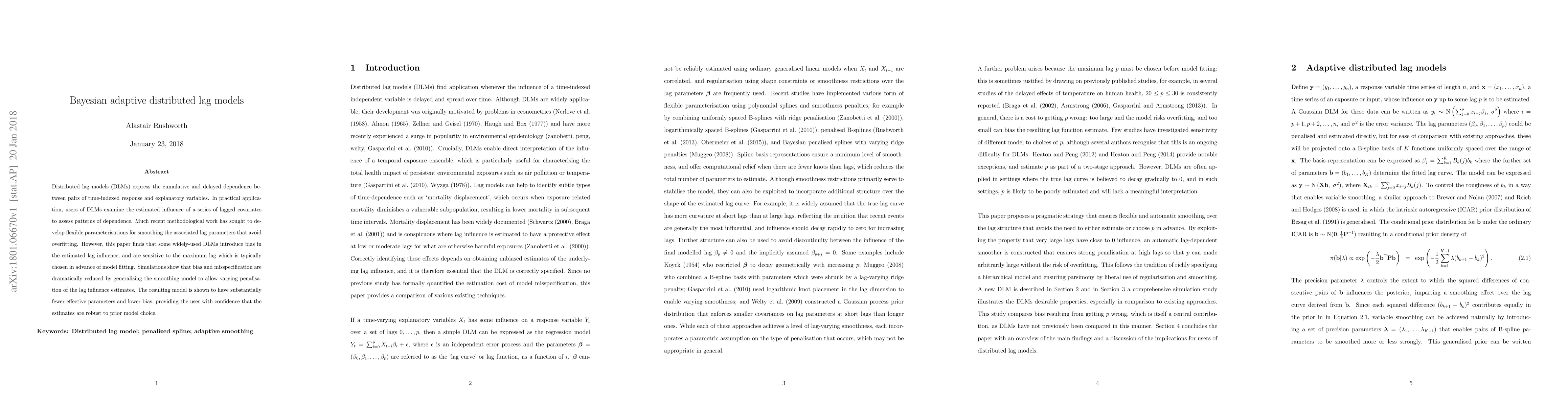 A new adaptive smoothing approach is proposed to improve the estimation of lag structure in distributed lag models.