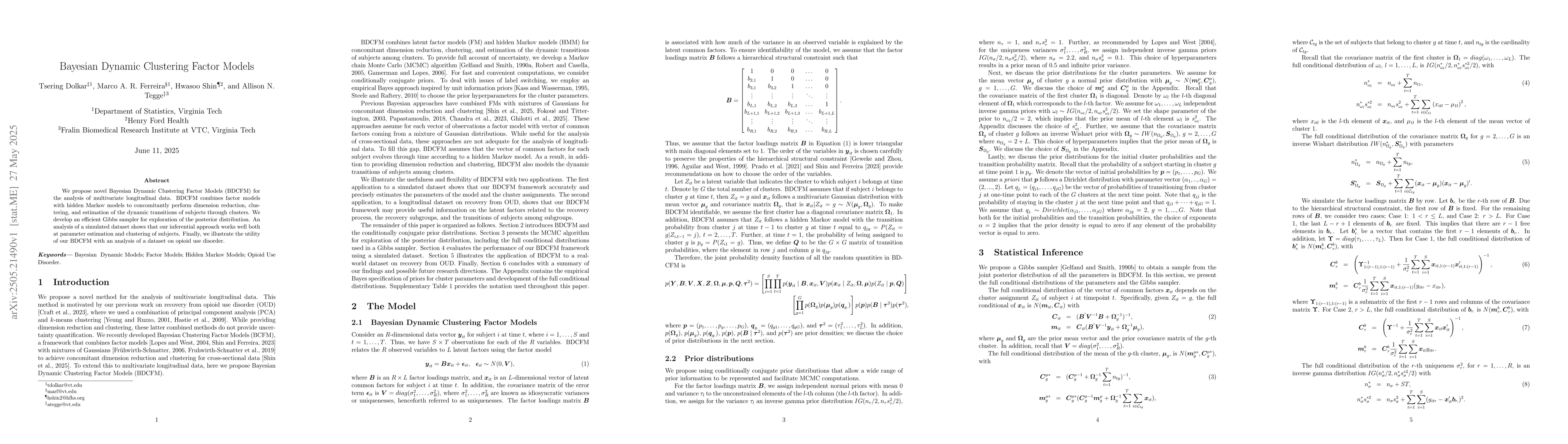 Researchers propose Bayesian Dynamic Clustering Factor Models to analyze multivariate longitudinal data, combining factor models with hidden Markov models for dimension reduction, clustering, and estimation of dynamic transitions.