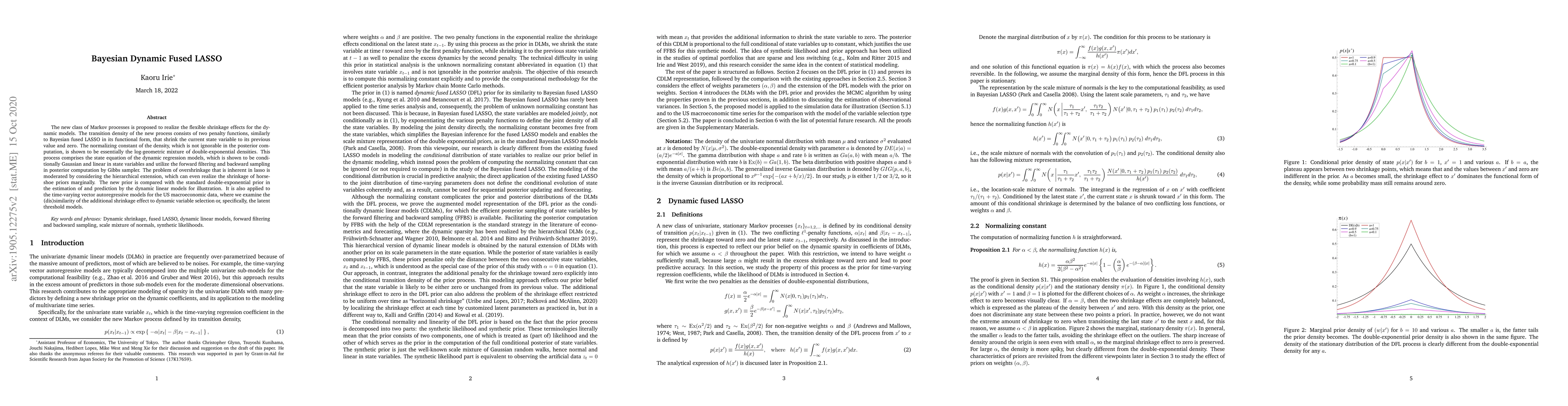 This paper introduces a new class of Markov processes for dynamic models that employs a Bayesian Dynamic Fused LASSO approach to achieve flexible shrinkage effects. The proposed process addresses overshrinkage issues inherent in LASSO through hierarchical extensions and is applied to dynamic linear and vector autoregressive models for macroeconomic data analysis.