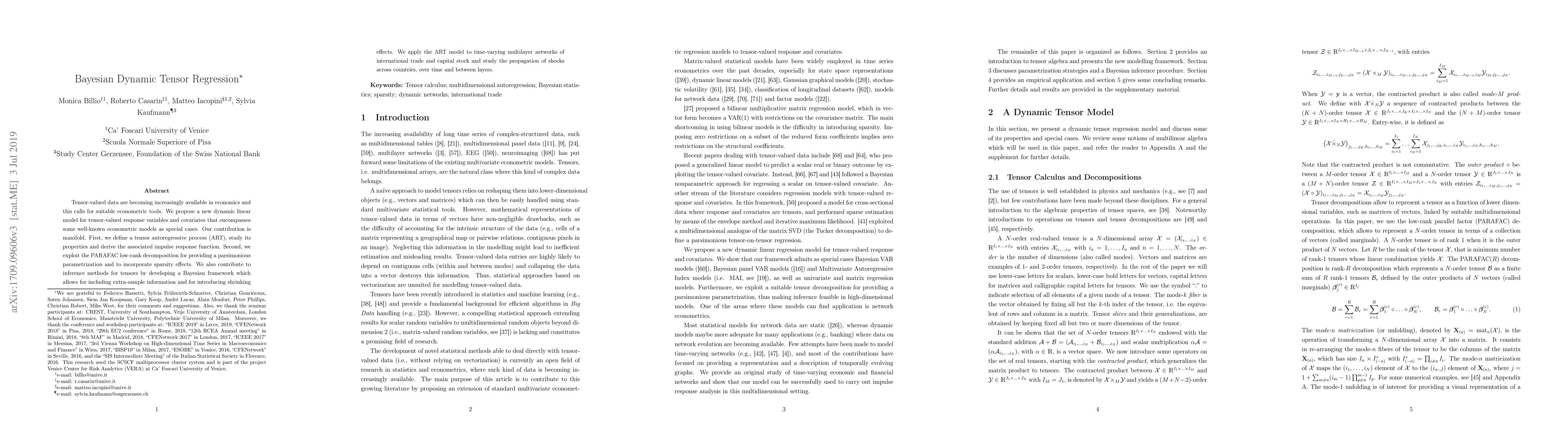 A new Bayesian dynamic model is proposed to analyze tensor-valued data in economics, incorporating multilayer networks of international trade and capital stock, allowing for the study of shock propagation across countries and time.