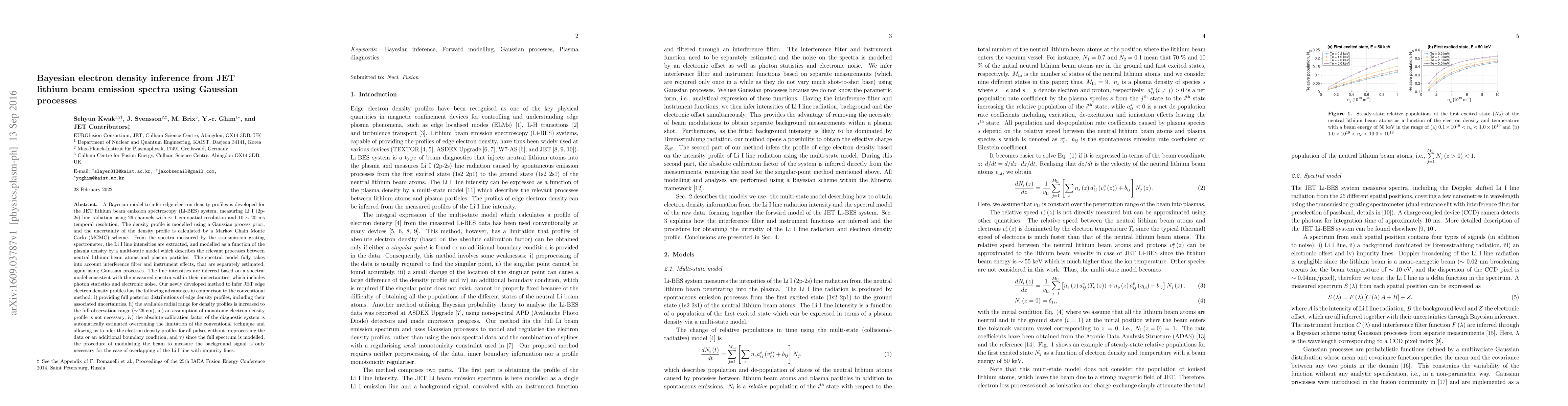 A new method for measuring edge electron density profiles in JET using lithium beam emission spectroscopy has been developed, providing full posterior distributions of density profiles with increased accuracy and flexibility.