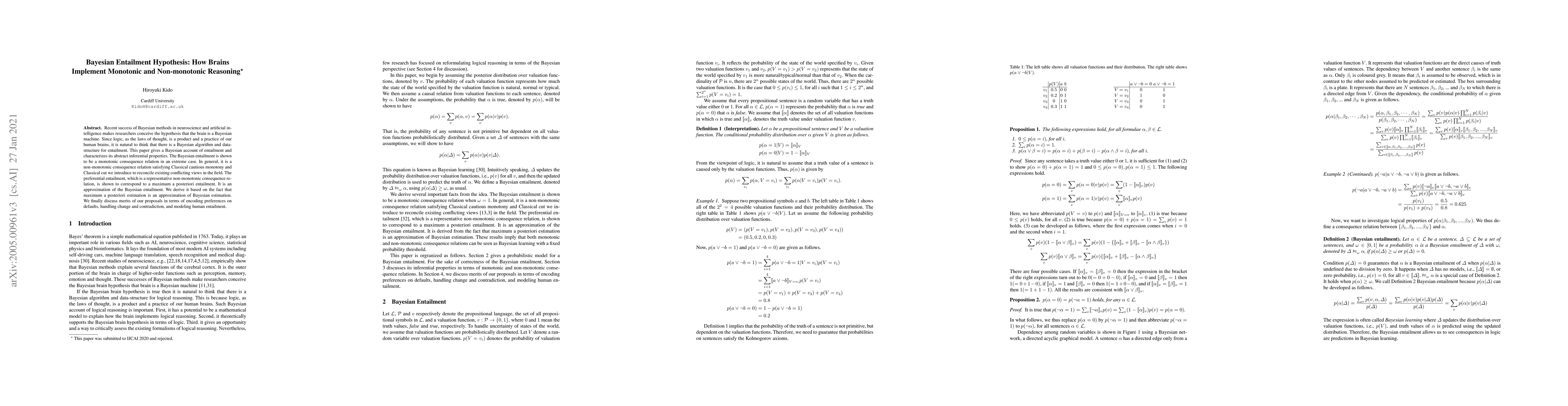 This paper proposes a Bayesian framework for logical reasoning, suggesting that the brain employs Bayesian methods to implement both monotonic and non-monotonic entailment. It characterizes Bayesian entailment as a non-monotonic consequence relation and discusses its advantages in preference encoding, change management, and contradiction handling.