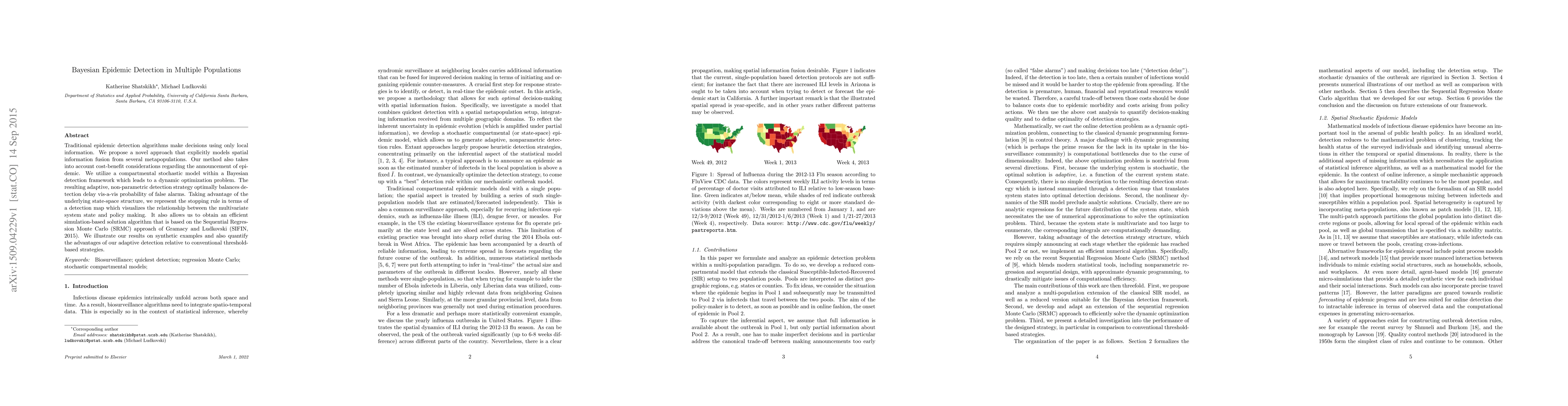 Traditional epidemic detection algorithms make decisions using only local information. We propose a novel approach that explicitly models spatial information fusion from several metapopulations. Our method also takes into account cost-benefit considerations regarding the announcement of epidemic. We utilize a compartmental stochastic model within a Bayesian detection framework which leads to a dynamic optimization problem. The resulting adaptive, non-parametric detection strategy optimally balances detection delay vis-a-vis probability of false alarms. Taking advantage of the underlying state-space structure, we represent the stopping rule in terms of a detection map which visualizes the relationship between the multivariate system state and policy making. It also allows us to obtain an efficient simulation-based solution algorithm that is based on the Sequential Regression Monte Carlo (SRMC) approach of Gramacy and Ludkovski (SIFIN, 2015). We illustrate our results on synthetic examples and also quantify the advantages of our adaptive detection relative to conventional threshold-based strategies.