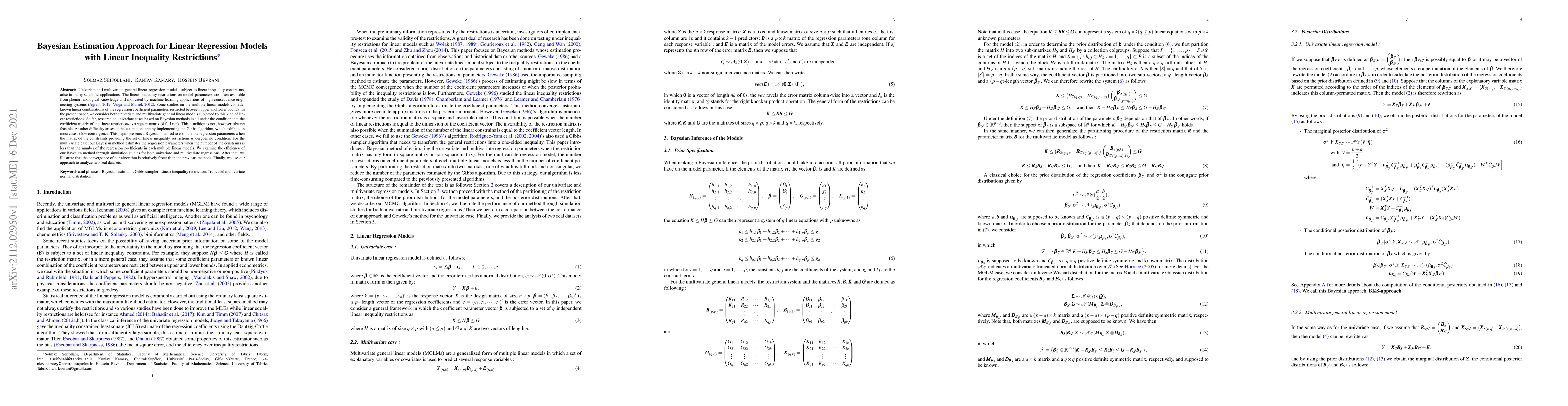 This paper proposes a Bayesian estimation approach for linear regression models with linear inequality restrictions, addressing the limitations of existing methods when the constraint matrix is not square or full rank. The new method efficiently estimates regression parameters in both univariate and multivariate cases, demonstrating faster convergence and effectiveness through simulation studies and real dataset analyses.
