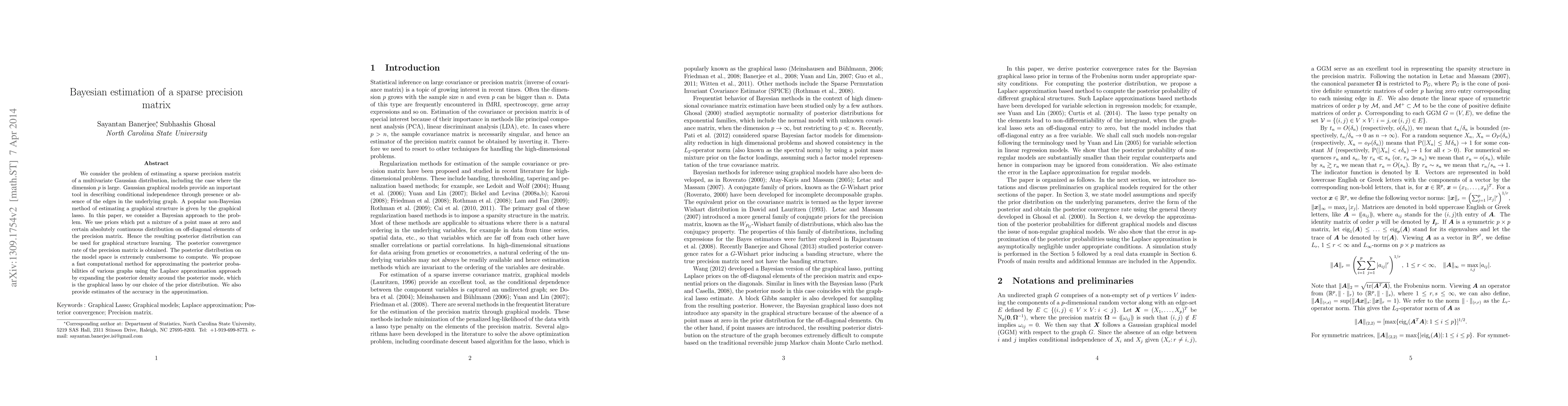 We consider the problem of estimating a sparse precision matrix of a multivariate Gaussian distribution, including the case where the dimension $p$ is large. Gaussian graphical models provide an important tool in describing conditional independence through presence or absence of the edges in the underlying graph. A popular non-Bayesian method of estimating a graphical structure is given by the graphical lasso. In this paper, we consider a Bayesian approach to the problem. We use priors which put a mixture of a point mass at zero and certain absolutely continuous distribution on off-diagonal elements of the precision matrix. Hence the resulting posterior distribution can be used for graphical structure learning. The posterior convergence rate of the precision matrix is obtained. The posterior distribution on the model space is extremely cumbersome to compute. We propose a fast computational method for approximating the posterior probabilities of various graphs using the Laplace approximation approach by expanding the posterior density around the posterior mode, which is the graphical lasso by our choice of the prior distribution. We also provide estimates of the accuracy in the approximation.