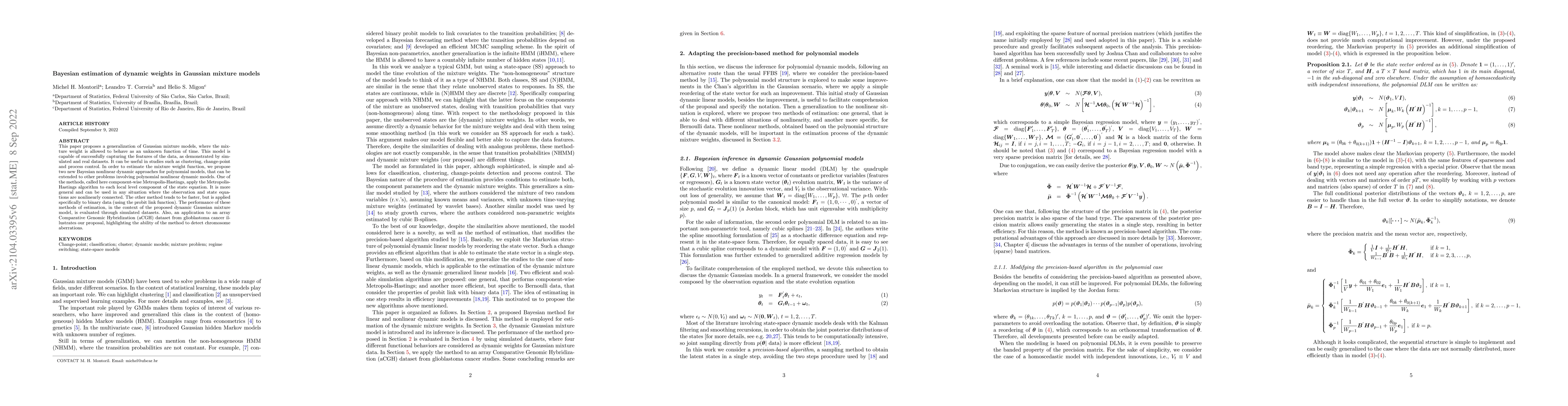 This paper introduces a dynamic Gaussian mixture model where mixture weights vary over time, employing two Bayesian methods for estimating the weight function: a component-wise Metropolis-Hastings for general nonlinear models and a faster method for binary data. The effectiveness of these methods is demonstrated through simulations and an application to cancer genomic data.