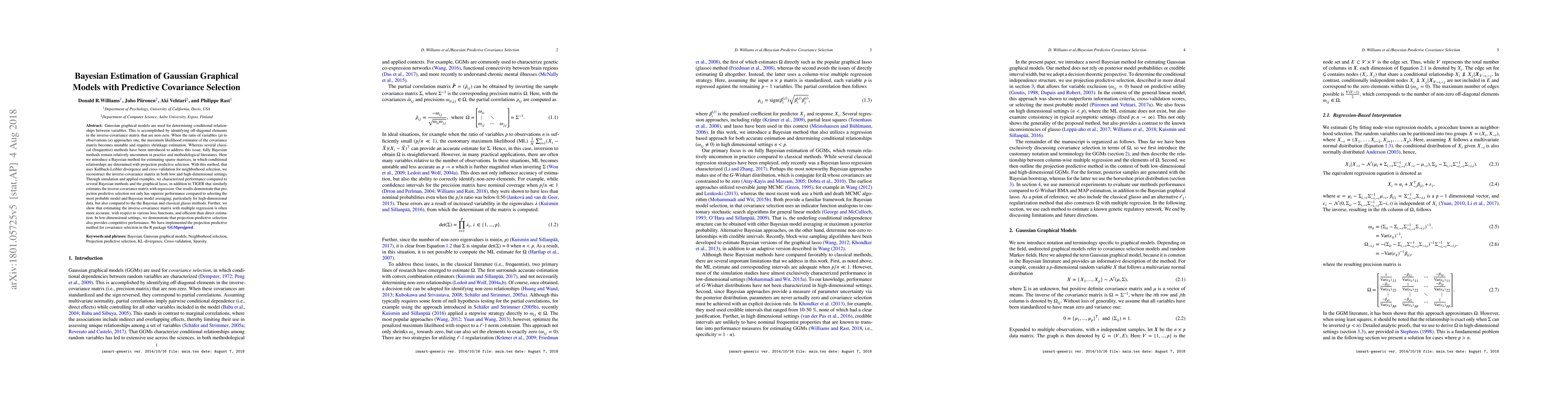 Gaussian graphical models are used for determining conditional relationships between variables. This is accomplished by identifying off-diagonal elements in the inverse-covariance matrix that are non-zero. When the ratio of variables (p) to observations (n) approaches one, the maximum likelihood estimator of the covariance matrix becomes unstable and requires shrinkage estimation. Whereas several classical (frequentist) methods have been introduced to address this issue, fully Bayesian methods remain relatively uncommon in practice and methodological literatures. Here we introduce a Bayesian method for estimating sparse matrices, in which conditional relationships are determined with projection predictive selection. With this method, that uses Kullback-Leibler divergence and cross-validation for neighborhood selection, we reconstruct the inverse-covariance matrix in both low and high-dimensional settings. Through simulation and applied examples, we characterized performance compared to several Bayesian methods and the graphical lasso, in addition to TIGER that similarly estimates the inverse-covariance matrix with regression. Our results demonstrate that projection predictive selection not only has superior performance compared to selecting the most probable model and Bayesian model averaging, particularly for high-dimensional data, but also compared to the the Bayesian and classical glasso methods. Further, we show that estimating the inverse-covariance matrix with multiple regression is often more accurate, with respect to various loss functions, and efficient than direct estimation. In low-dimensional settings, we demonstrate that projection predictive selection also provides competitive performance. We have implemented the projection predictive method for covariance selection in the R package GGMprojpred