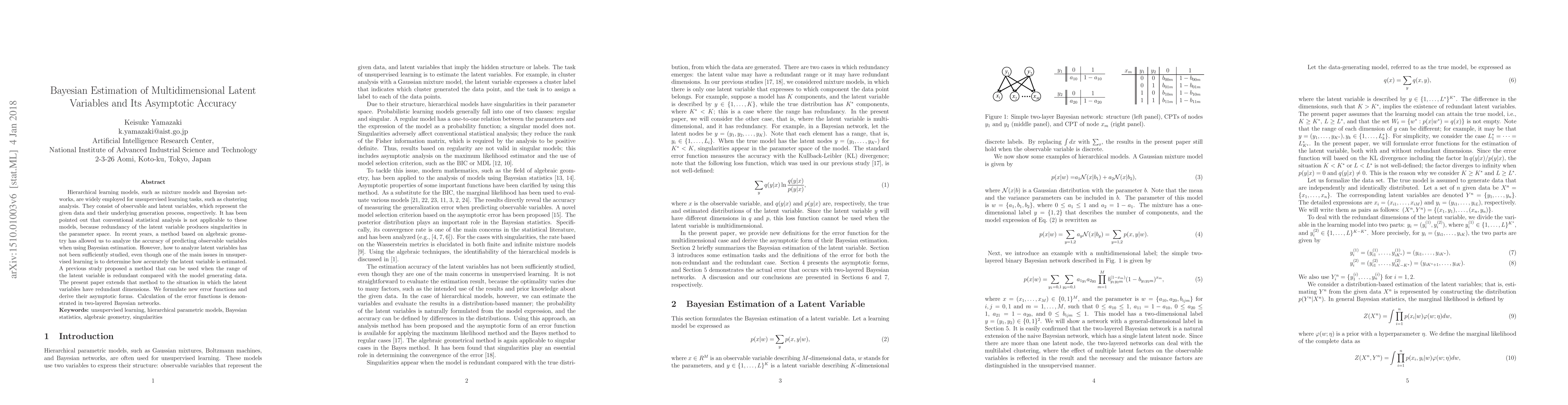 This paper extends a method to estimate the accuracy of multidimensional latent variables in hierarchical learning models, proposing new error functions and their asymptotic forms. It demonstrates the calculation of these functions in two-layered Bayesian networks, addressing the challenge of redundant latent variables in unsupervised learning.