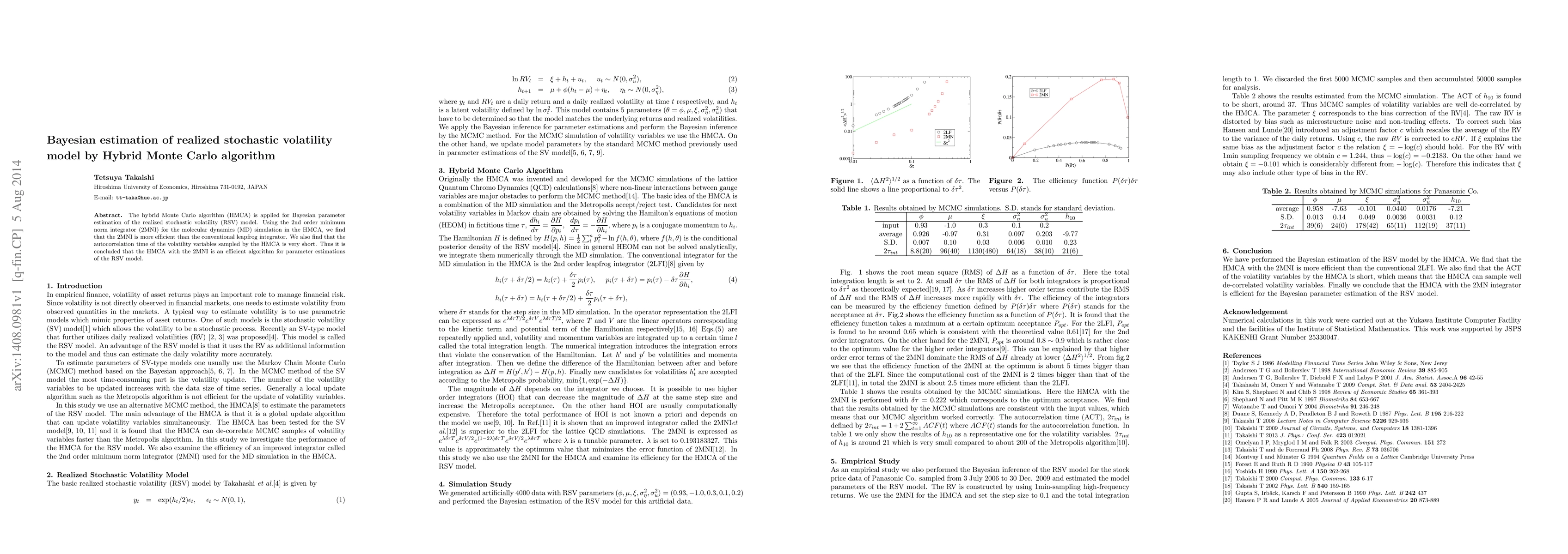 The hybrid Monte Carlo algorithm (HMCA) with the 2nd order minimum norm integrator (2MNI) is shown to be more efficient than the conventional leapfrog integrator for Bayesian parameter estimation in the realized stochastic volatility model. The HMCA with 2MNI exhibits short autocorrelation times, indicating its effectiveness for this purpose.