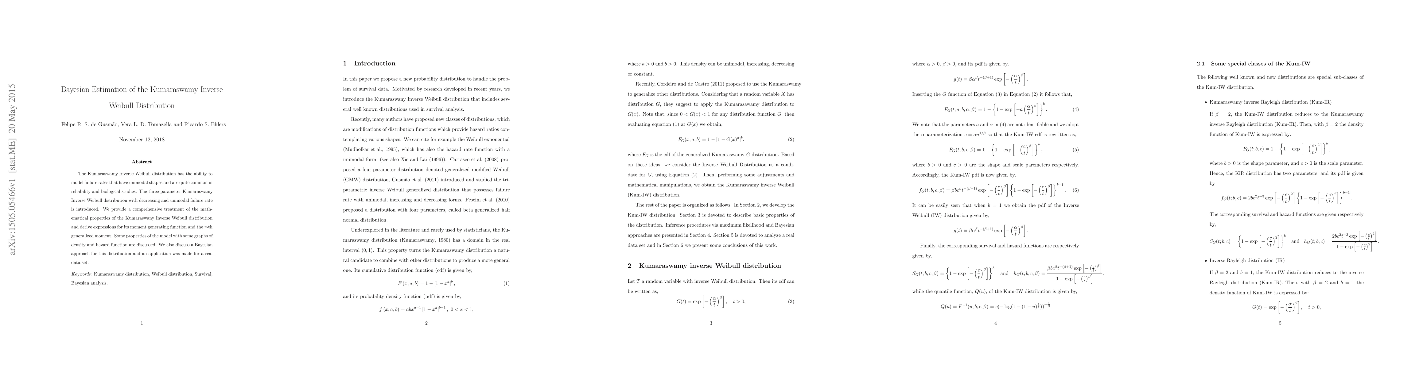 This paper introduces the three-parameter Kumaraswamy Inverse Weibull distribution, which models unimodal failure rates, and explores its mathematical properties, including moment generating functions and generalized moments. A Bayesian estimation method is proposed, and an application to real data is demonstrated.