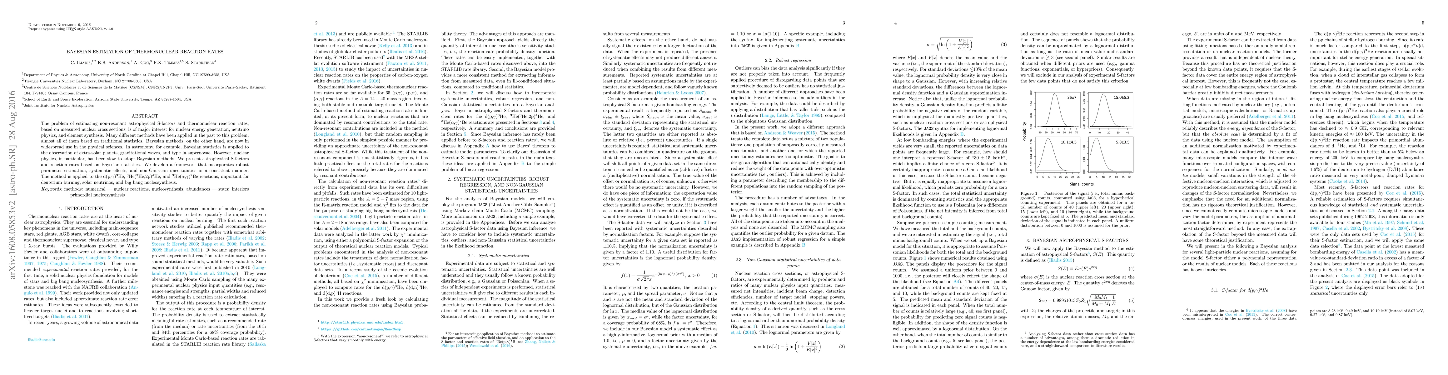This paper introduces a Bayesian statistical framework for estimating astrophysical S-factors and thermonuclear reaction rates, addressing non-Gaussian uncertainties and systematic effects. The method is applied to key nuclear reactions relevant to nuclear energy, neutrino physics, and element synthesis.