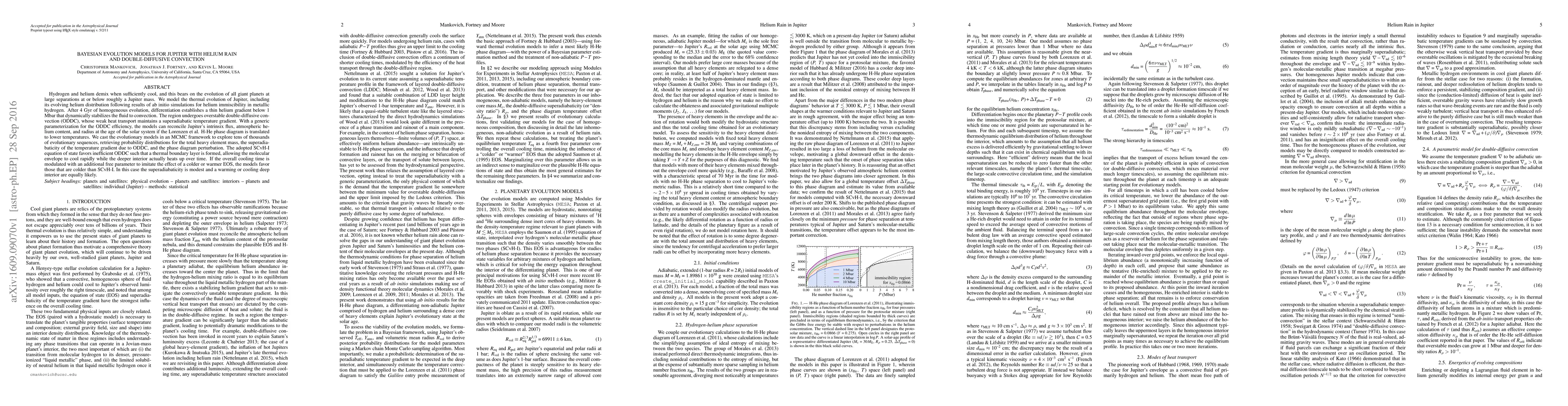 Hydrogen and helium demix when sufficiently cool, and this bears on the evolution of all giant planets at large separations at or below roughly a Jupiter mass. We model the thermal evolution of Jupiter, including its evolving helium distribution following results of ab initio simulations for helium immiscibility in metallic hydrogen. After 4 Gyr of homogeneous evolution, differentiation establishes a thin helium gradient below 1 Mbar that dynamically stabilizes the fluid to convection. The region undergoes overstable double-diffusive convection (ODDC), whose weak heat transport maintains a superadiabatic temperature gradient. With a generic parameterization for the ODDC efficiency, the models can reconcile Jupiter's intrinsic flux, atmospheric helium content, and radius at the age of the solar system if the Lorenzen et al. H-He phase diagram is translated to lower temperatures. We cast the evolutionary models in an MCMC framework to explore tens of thousands of evolutionary sequences, retrieving probability distributions for the total heavy element mass, the superadiabaticity of the temperature gradient due to ODDC, and the phase diagram perturbation. The adopted SCvH-I equation of state favors inefficient ODDC such that a thermal boundary layer is formed, allowing the molecular envelope to cool rapidly while the deeper interior actually heats up over time. If the overall cooling time is modulated with an additional free parameter to imitate the effect of a colder or warmer EOS, the models favor those that are colder than SCvH-I. In this case the superadiabaticity is modest and a warming or cooling deep interior are equally likely.