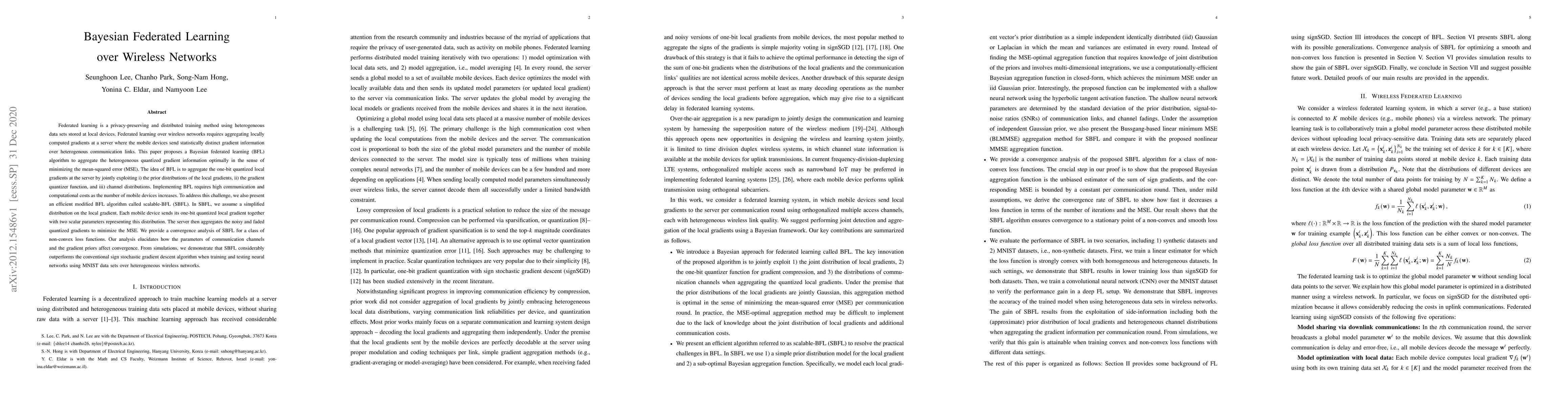 This paper proposes a Bayesian federated learning algorithm (BFL) to optimally aggregate quantized gradient information from mobile devices over wireless networks, minimizing mean-squared error. To address scalability issues, it introduces a scalable-BFL (SBFL) variant that simplifies the gradient distribution assumption, significantly reducing communication and computational costs. Simulation results show SBFL outperforms conventional methods for neural network training on MNIST datasets.