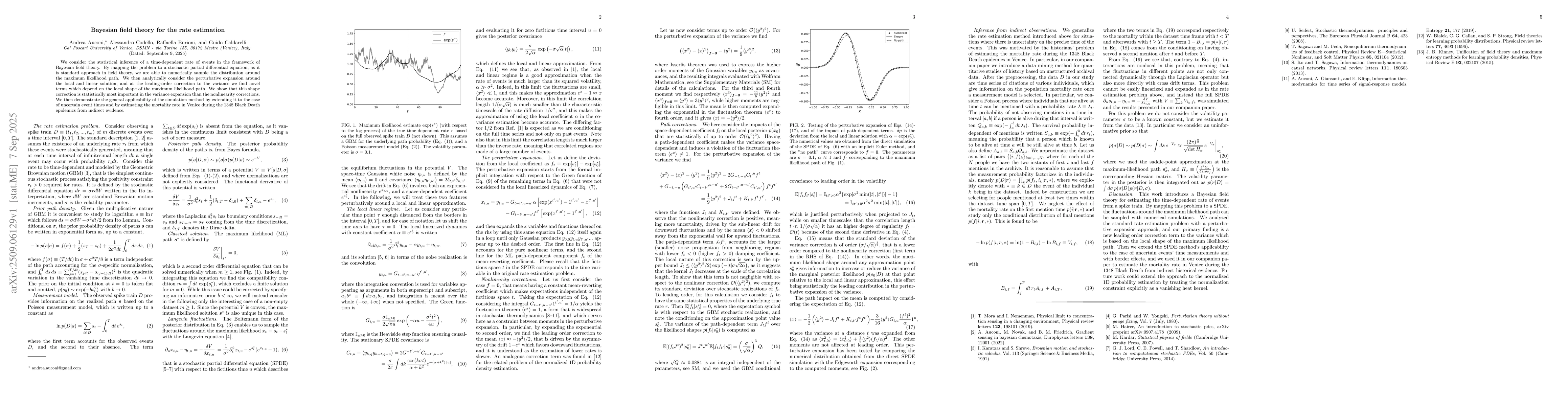 We consider the statistical inference of a time-dependent rate of events in the framework of Bayesian field theory. By mapping the problem to a stochastic partial differential equation, as it is standard approach in field theory, we are able to numerically sample the distribution around the maximum likelihood path. We then analytically consider the perturbative expansion around the local and linear solution, and at the leading-order correction to the variance we find novel terms which depend on the local shape of the maximum likelihood path. We show that this shape correction is statistically most important in the variance expansion than the nonlinearity corrections. We then demonstrate the general applicability of the simulation method by extending it to the case of uncertain event times and by estimating the mortality rate in Venice during the 1348 Black Death epidemics from indirect evidence.