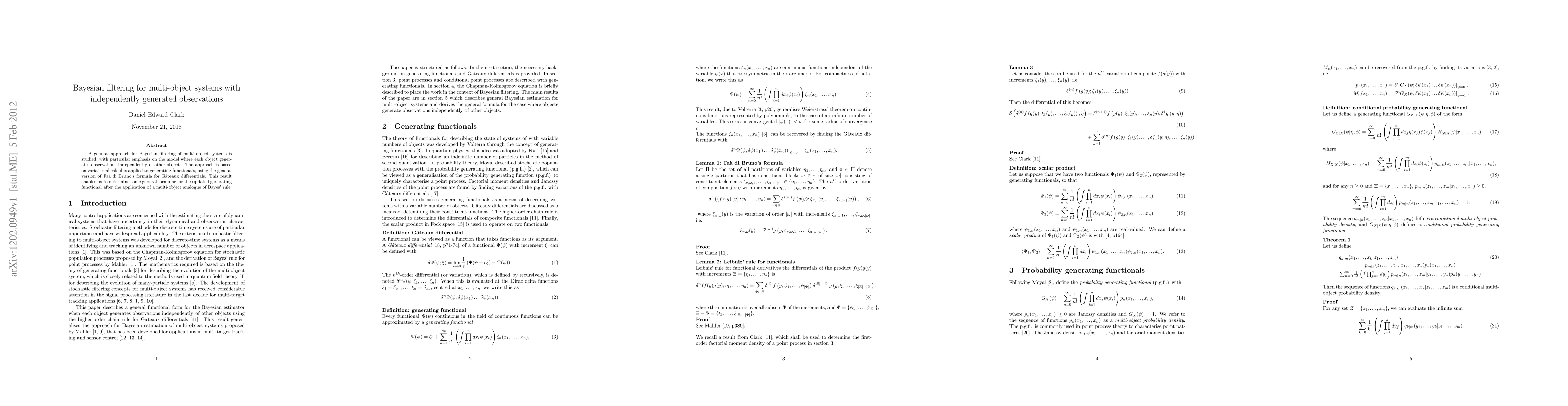 A general approach for Bayesian filtering of multi-object systems is studied, with particular emphasis on the model where each object generates observations independently of other objects. The approach is based on variational calculus applied to generating functionals, using the general version of Faa di Bruno's formula for Gateaux differentials. This result enables us to determine some general formulae for the updated generating functional after the application of a multi-object analogue of Bayes' rule.