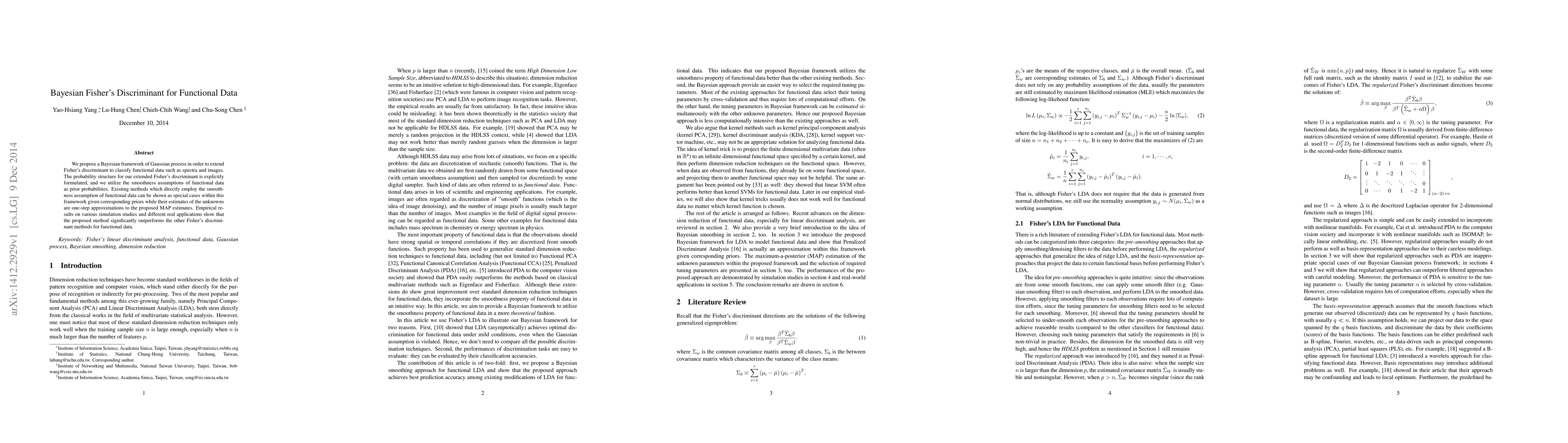 This paper proposes a Bayesian framework for Fisher's discriminant to classify functional data like spectra and images, outperforming existing methods in simulation studies and real applications.