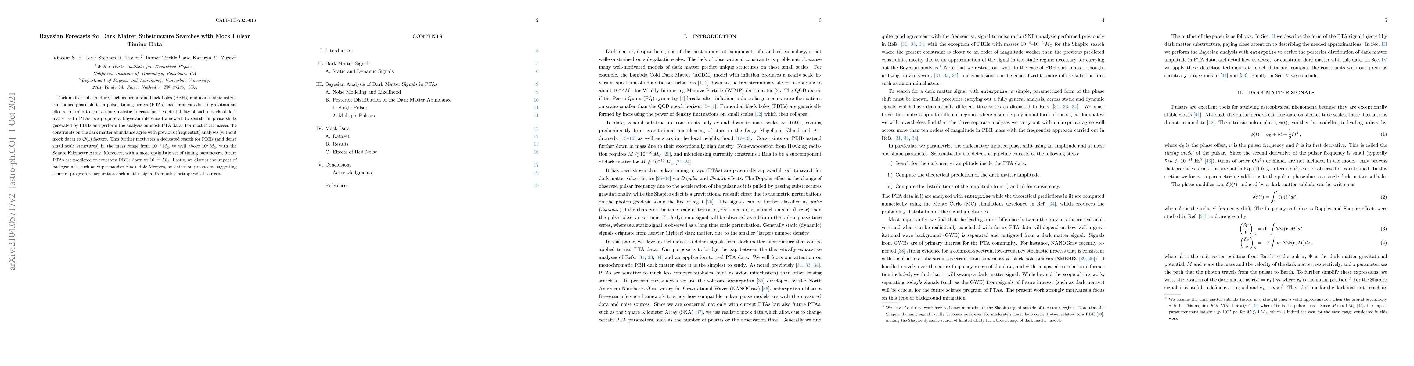 Dark matter substructure, such as primordial black holes (PBHs) and axion miniclusters, can induce phase shifts in pulsar timing arrays (PTAs) measurements due to gravitational effects. In order to gain a more realistic forecast for the detectability of such models of dark matter with PTAs, we propose a Bayesian inference framework to search for phase shifts generated by PBHs and perform the analysis on mock PTA data. For most PBH masses the constraints on the dark matter abundance agree with previous (frequentist) analyses (without mock data) to $\mathcal{O}(1)$ factors. This further motivates a dedicated search for PBHs (and dense small scale structures) in the mass range from $10^{-8}\,M_{\odot}$ to well above $10^2\,M_{\odot}$ with the Square Kilometer Array. Moreover, with a more optimistic set of timing parameters, future PTAs are predicted to constrain PBHs down to $10^{-11}\,M_{\odot}$. Lastly, we discuss the impact of backgrounds, such as Supermassive Black Hole Mergers, on detection prospects, suggesting a future program to separate a dark matter signal from other astrophysical sources.
