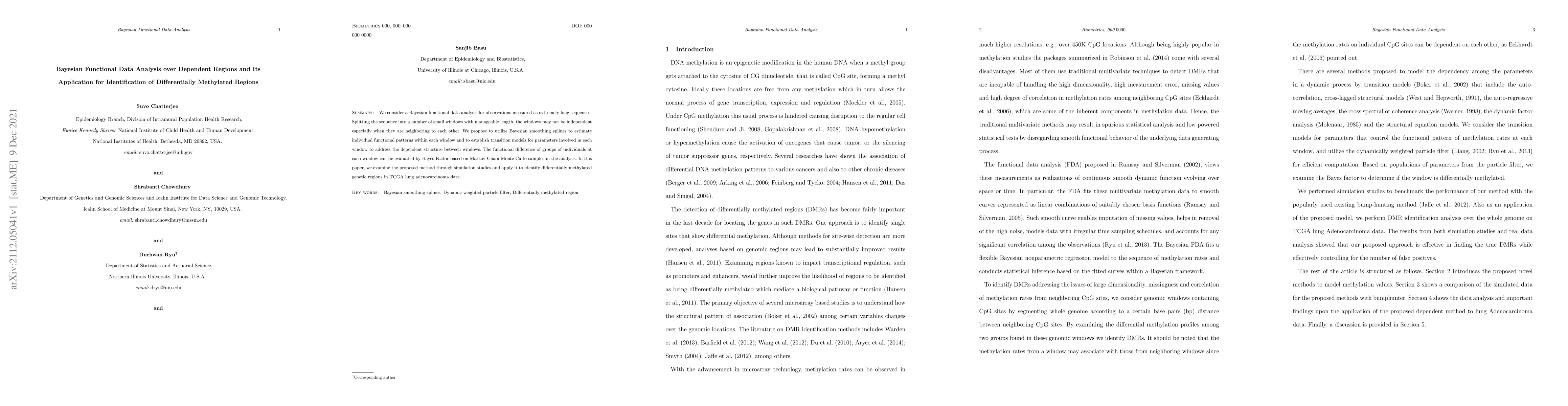 This paper proposes a Bayesian functional data analysis method to handle dependent regions in long sequence data, using smoothing splines and transition models. It applies the method to identify differentially methylated regions in TCGA lung adenocarcinoma data, demonstrating its effectiveness through simulations.