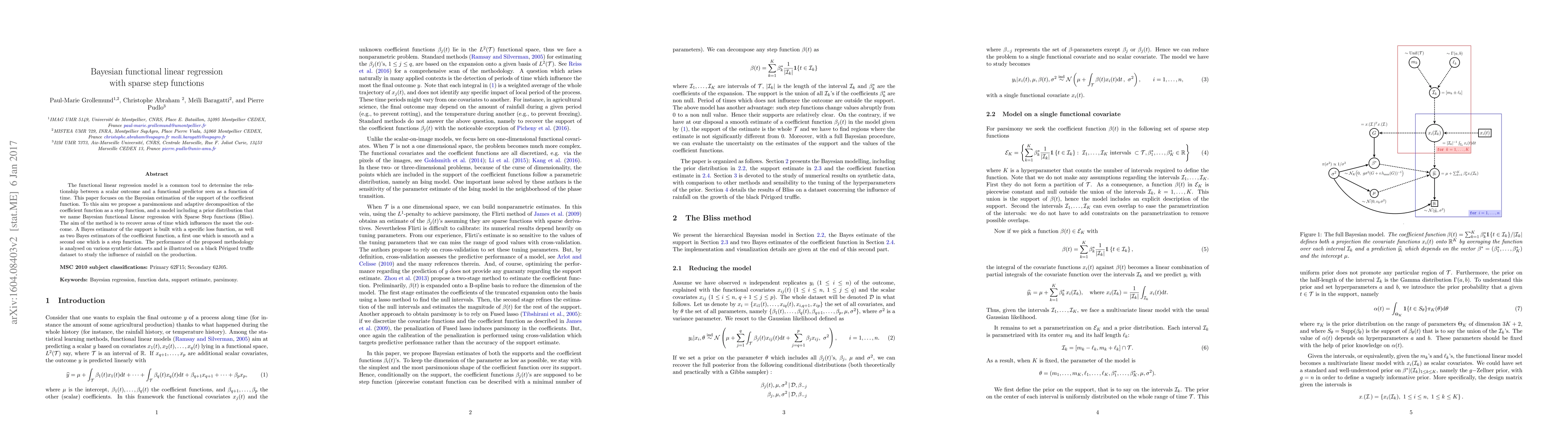 The functional linear regression model is a common tool to determine the relationship between a scalar outcome and a functional predictor seen as a function of time. This paper focuses on the Bayesian estimation of the support of the coefficient function. To this aim we propose a parsimonious and adaptive decomposition of the coefficient function as a step function, and a model including a prior distribution that we name Bayesian functional Linear regression with Sparse Step functions (Bliss). The aim of the method is to recover areas of time which influences the most the outcome. A Bayes estimator of the support is built with a specific loss function, as well as two Bayes estimators of the coefficient function, a first one which is smooth and a second one which is a step function. The performance of the proposed methodology is analysed on various synthetic datasets and is illustrated on a black P\'erigord truffle dataset to study the influence of rainfall on the production.