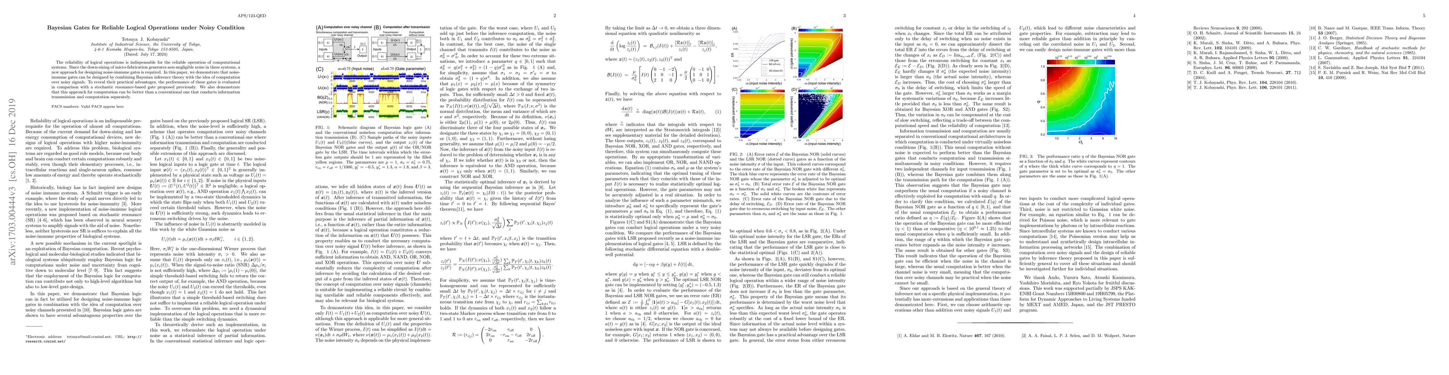 The reliability of logical operations is indispensable for the reliable operation of computational systems. Since the down-sizing of micro-fabrication generates non-negligible noise in these systems, a new approach for designing noise-immune gates is required. In this paper, we demonstrate that noise-immune gates can be designed by combining Bayesian inference theory with the idea of computation over a noisy signal. To reveal their practical advantages, the performance of these gates is evaluated in comparison with a stochastic resonance-based gate proposed previously. This approach for computation is also demonstrated to be better than a conventional one that conducts information transmission and computation separately.