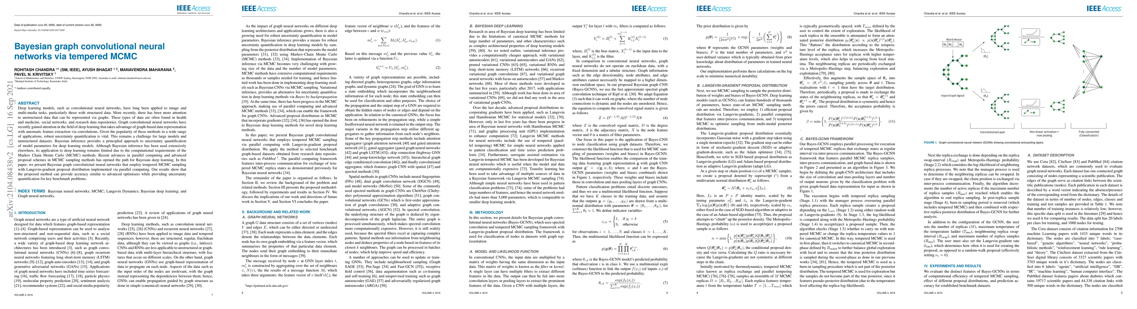 This paper introduces Bayesian graph convolutional neural networks utilizing tempered Markov Chain Monte Carlo (MCMC) sampling with parallel computing to address uncertainty quantification in deep learning models. The proposed method achieves comparable accuracy to advanced optimizers while offering robust uncertainty estimates for graph-based data.
