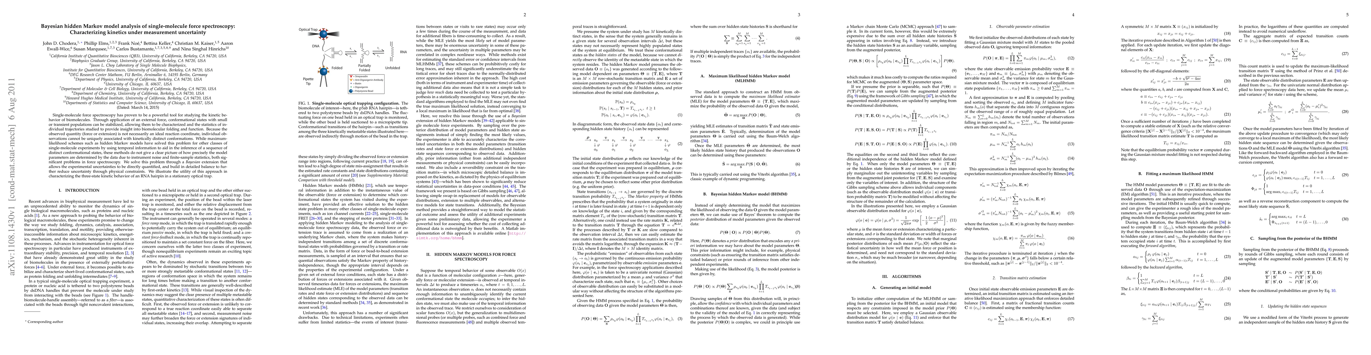 Single-molecule force spectroscopy has proven to be a powerful tool for studying the kinetic behavior of biomolecules. Through application of an external force, conformational states with small or transient populations can be stabilized, allowing them to be characterized and the statistics of individual trajectories studied to provide insight into biomolecular folding and function. Because the observed quantity (force or extension) is not necessarily an ideal reaction coordinate, individual observations cannot be uniquely associated with kinetically distinct conformations. While maximum-likelihood schemes such as hidden Markov models have solved this problem for other classes of single-molecule experiments by using temporal information to aid in the inference of a sequence of distinct conformational states, these methods do not give a clear picture of how precisely the model parameters are determined by the data due to instrument noise and finite-sample statistics, both significant problems in force spectroscopy. We solve this problem through a Bayesian extension that allows the experimental uncertainties to be directly quantified, and build in detailed balance to further reduce uncertainty through physical constraints. We illustrate the utility of this approach in characterizing the three-state kinetic behavior of an RNA hairpin in a stationary optical trap.
