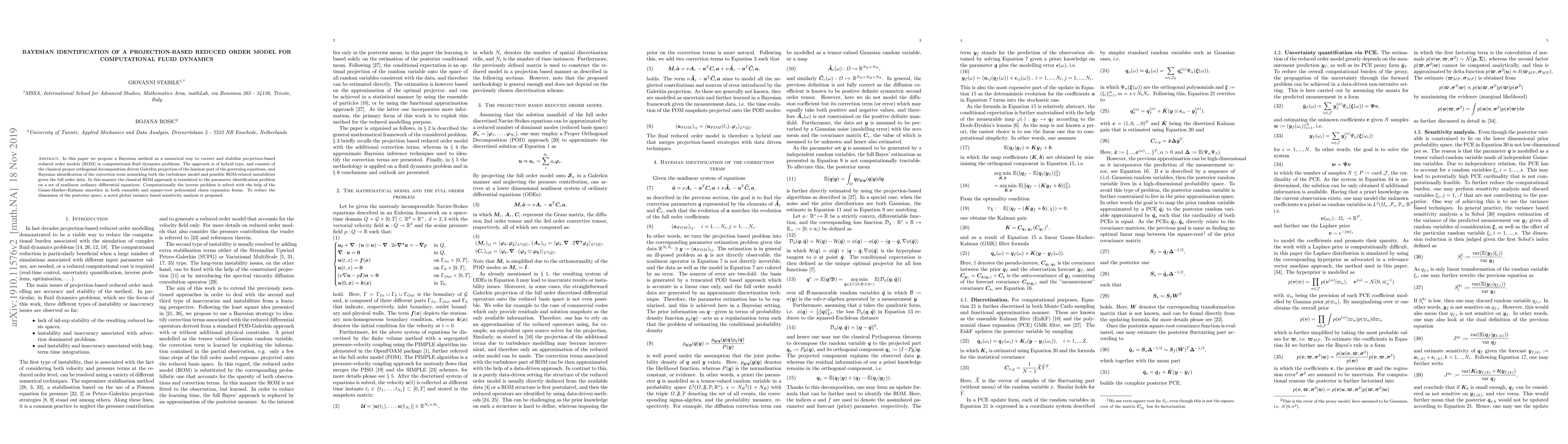 The paper presents a Bayesian identification technique for projection-based ROMs, combining POD-Galerkin projection with a GMK smoother and a novel sensitivity analysis for dimension reduction.