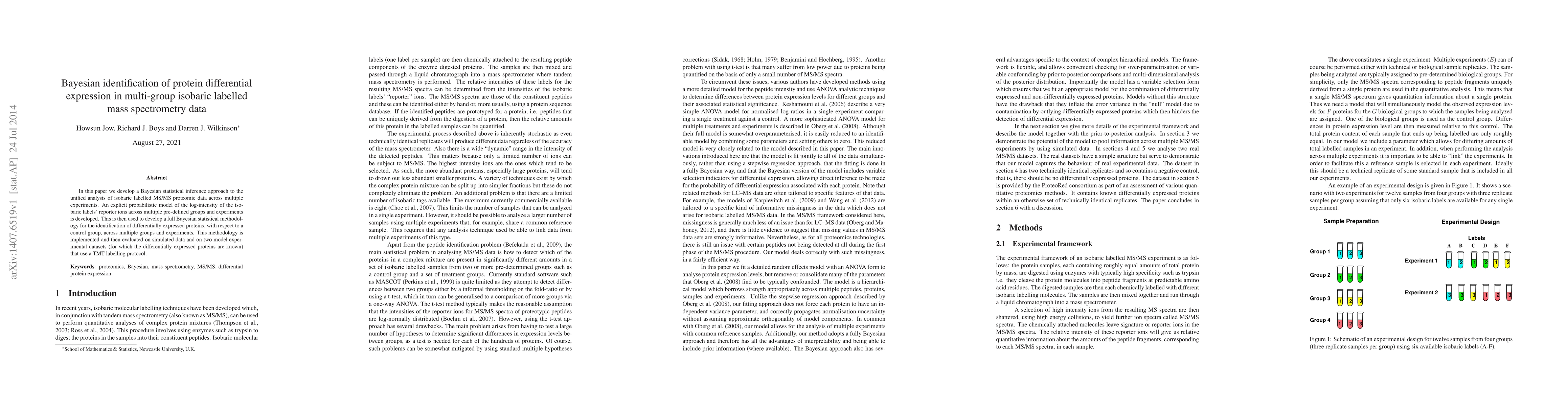 The method uses a probabilistic model to analyze log-intensity of reporter ions and evaluates its performance on simulated and real datasets using TMT labelling protocol.