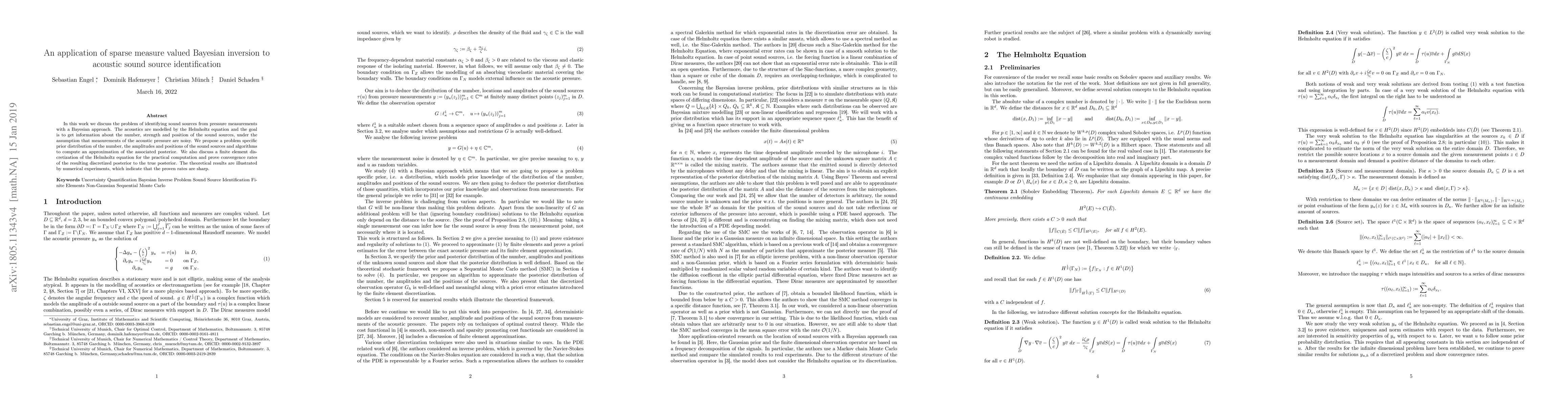 Researchers developed a Bayesian approach to identify sound sources from pressure measurements using the Helmholtz equation, achieving improved accuracy and convergence rates in numerical experiments.