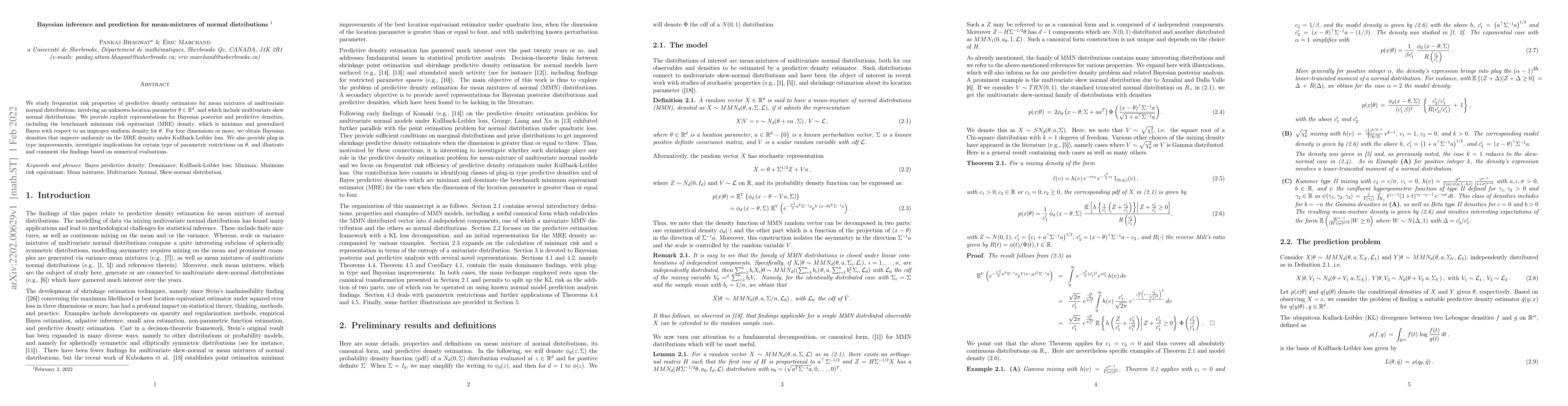 This paper investigates the frequentist risk properties of Bayesian predictive density estimators for mean mixtures of multivariate normal distributions, including multivariate skew normal distributions. It provides explicit representations for Bayesian posterior and predictive densities, showing that for four or more dimensions, these densities outperform the benchmark minimum risk equivariant density under Kullback-Leibler loss.
