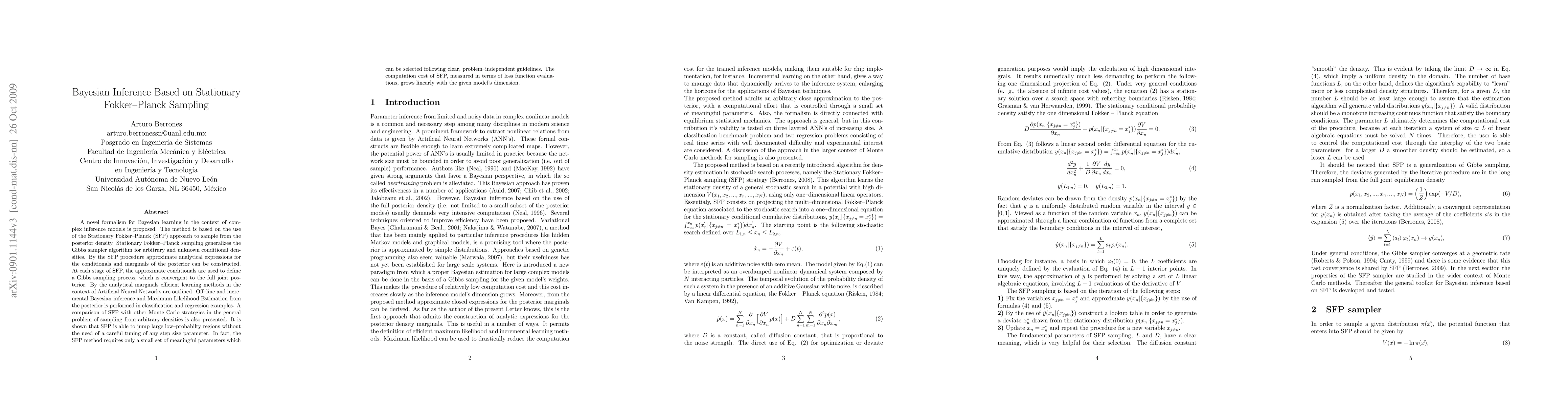 This paper proposes a novel Bayesian inference method based on the Stationary Fokker-Planck (SFP) approach for sampling from posterior densities, generalizing the Gibbs sampler. SFP efficiently constructs approximate analytical expressions for posterior conditionals and marginals, enabling effective learning in neural networks and performing off-line and incremental inference.