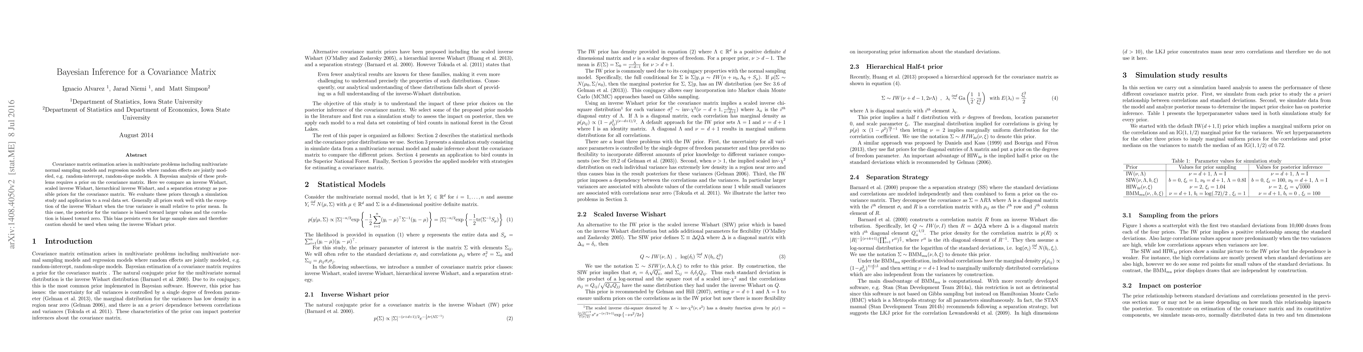 This paper examines the impact of different prior choices for the covariance matrix in Bayesian inference, using simulation and real data. While the inverse Wishart distribution is commonly used due to its conjugacy and simplicity, it imposes restrictive assumptions. Alternatives like the scaled inverse Wishart and separate priors for correlations and standard deviations offer more flexibility but come with trade-offs in conjugacy and computational efficiency.
