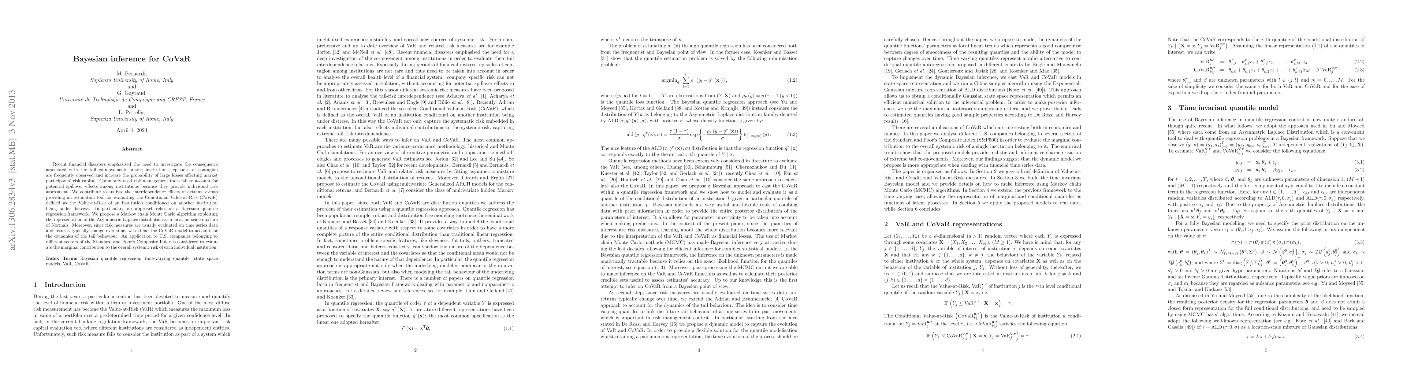 This research paper introduces a new Bayesian inference method to measure the Conditional Value-at-Risk (CoVaR) of financial institutions, accounting for interdependence effects and dynamic tail behavior.