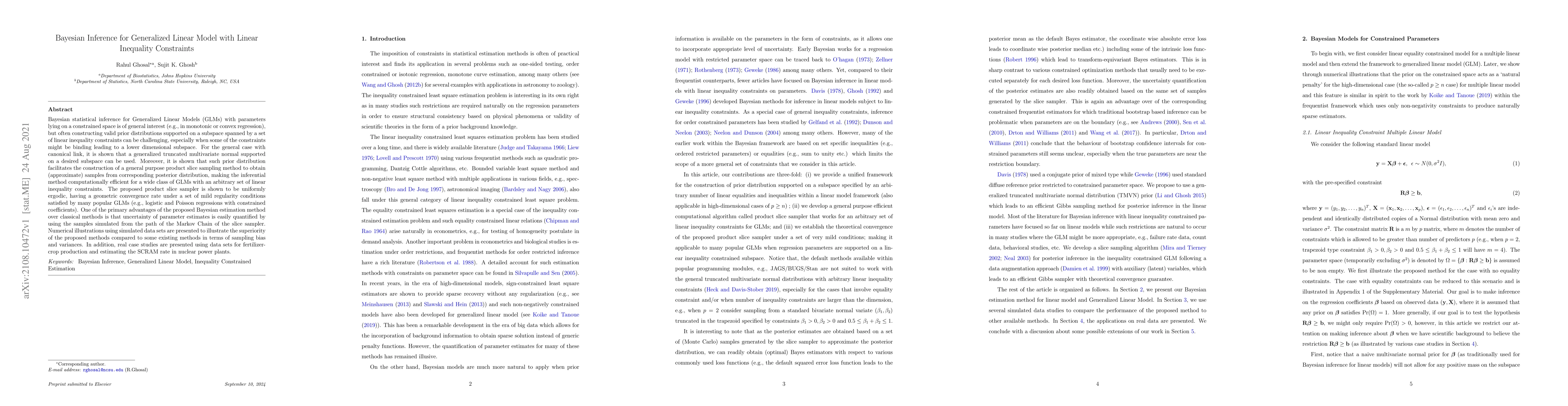 This paper proposes a Bayesian inference method for Generalized Linear Models with linear inequality constraints, using a generalized truncated multivariate normal prior. It introduces a product slice sampling method for efficient posterior sampling, demonstrating uniform ergodicity and geometric convergence. The method's advantages include easily quantifiable parameter uncertainty and superior performance over classical methods, as shown through numerical simulations and real-world case studies.