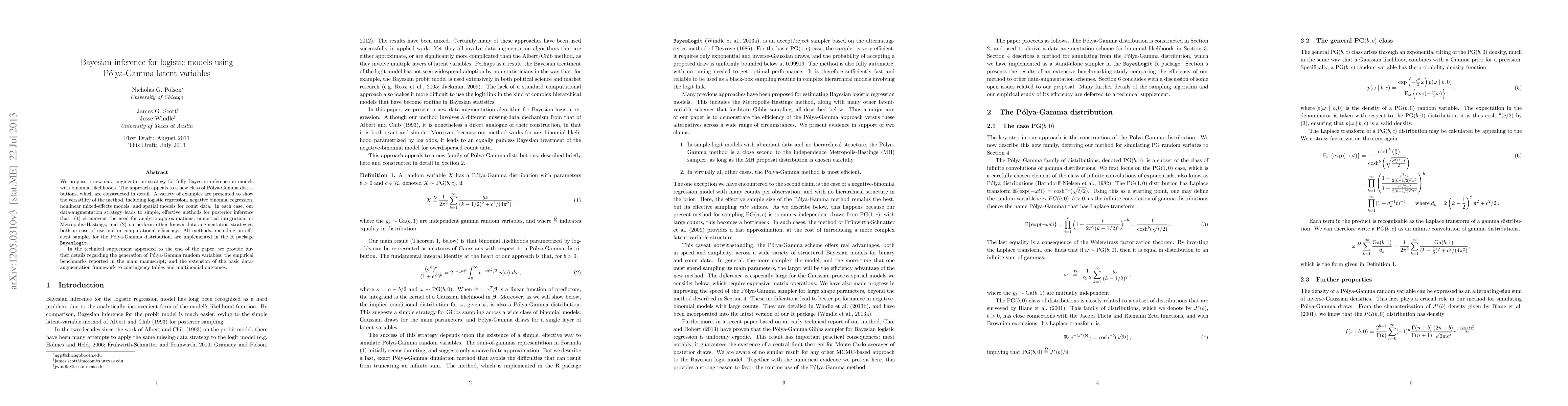 This paper proposes a new Bayesian inference method using Polya-Gamma latent variables for logistic models with binomial likelihoods, demonstrating its effectiveness in logistic regression and other applications. The method avoids complex approximations and outperforms existing strategies in computational efficiency.