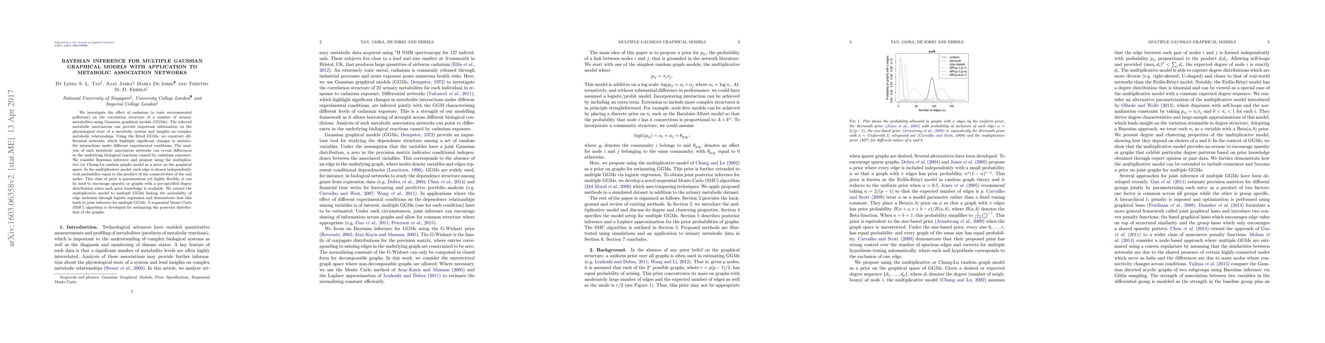 We investigate the effect of cadmium (a toxic environmental pollutant) on the correlation structure of a number of urinary metabolites using Gaussian graphical models (GGMs). The inferred metabolic associations can provide important information on the physiological state of a metabolic system and insights on complex metabolic relationships. Using the fitted GGMs, we construct differential networks, which highlight significant changes in metabolite interactions under different experimental conditions. The analysis of such metabolic association networks can reveal differences in the underlying biological reactions caused by cadmium exposure. We consider Bayesian inference and propose using the multiplicative (or Chung-Lu random graph) model as a prior on the graphical space. In the multiplicative model, each edge is chosen independently with probability equal to the product of the connectivities of the end nodes. This class of prior is parsimonious yet highly flexible; it can be used to encourage sparsity or graphs with a pre-specified degree distribution when such prior knowledge is available. We extend the multiplicative model to multiple GGMs linking the probability of edge inclusion through logistic regression and demonstrate how this leads to joint inference for multiple GGMs. A sequential Monte Carlo (SMC) algorithm is developed for estimating the posterior distribution of the graphs.
