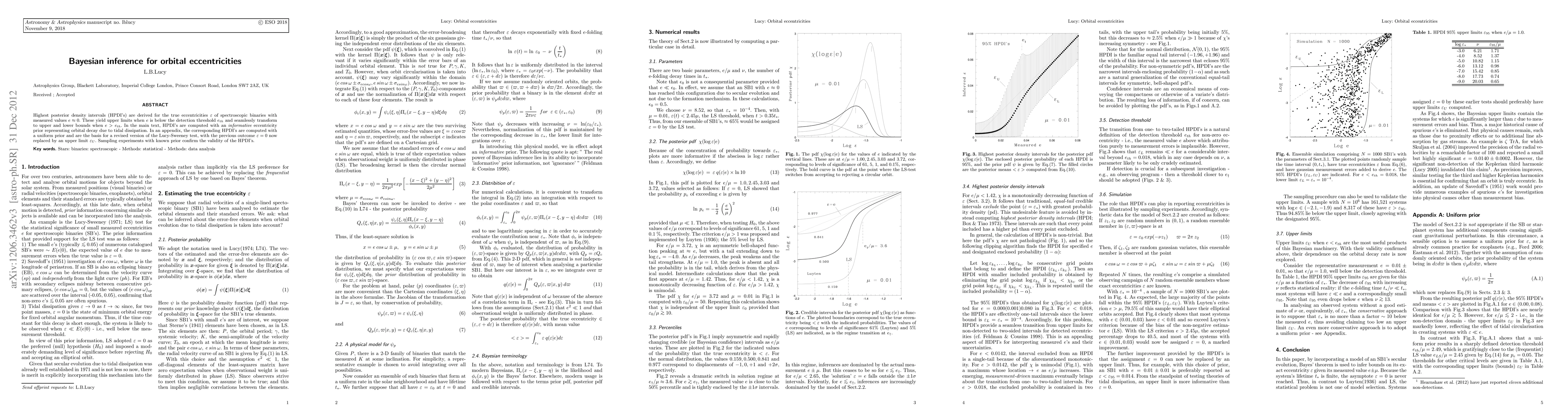 Researchers developed a method to estimate orbital eccentricities of binary stars with high accuracy using Bayesian inference. They found that even when the measured values are close to zero, their method provides useful upper limits for the true eccentricity.