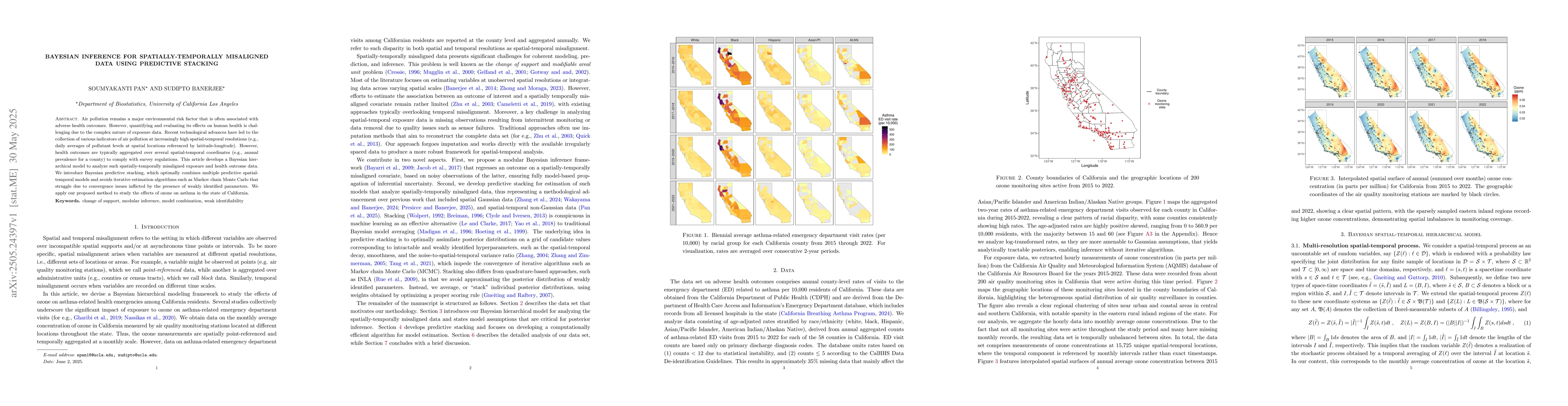 The research develops a Bayesian hierarchical model for analyzing spatially-temporally misaligned air pollution exposure and health outcome data, introducing Bayesian predictive stacking to optimally combine multiple predictive models without iterative estimation algorithms.