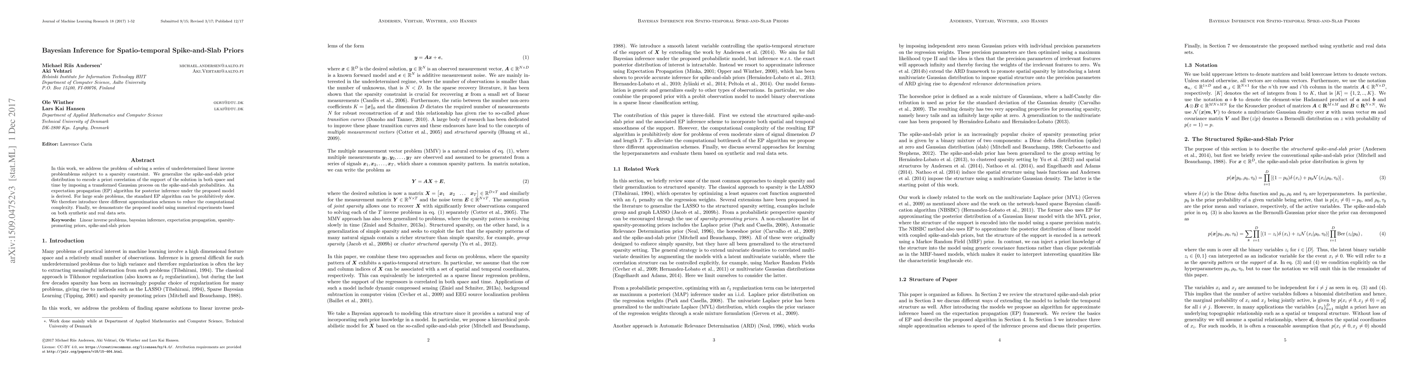 Researchers develop a Bayesian model for solving underdetermined linear inverse problems with spatial and temporal sparsity constraints, using a transformed Gaussian process to encode prior correlations in the solution support.