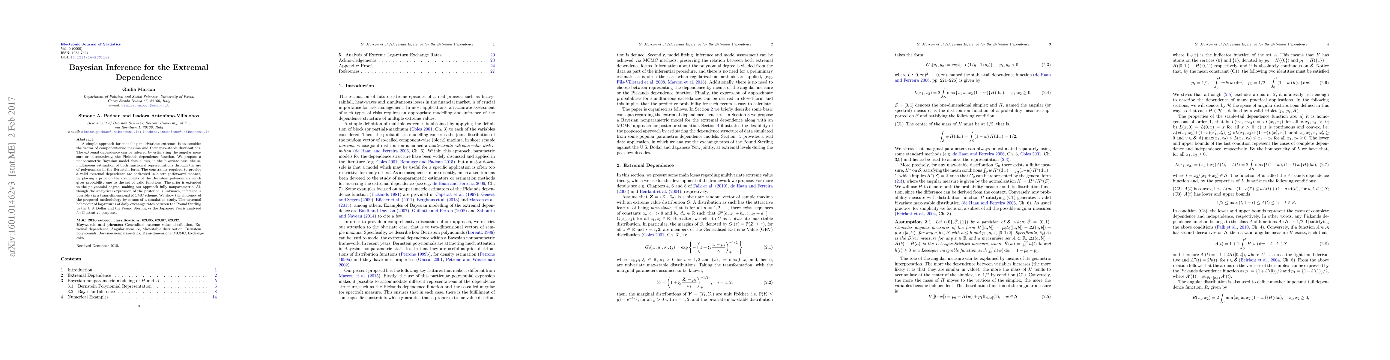 A simple approach for modeling multivariate extremes is to consider the vector of component-wise maxima and their max-stable distributions. The extremal dependence can be inferred by estimating the angular measure or, alternatively, the Pickands dependence function. We propose a nonparametric Bayesian model that allows, in the bivariate case, the simultaneous estimation of both functional representations through the use of polynomials in the Bernstein form. The constraints required to provide a valid extremal dependence are addressed in a straightforward manner, by placing a prior on the coefficients of the Bernstein polynomials which gives probability one to the set of valid functions. The prior is extended to the polynomial degree, making our approach fully nonparametric. Although the analytical expression of the posterior is unknown, inference is possible via a trans-dimensional MCMC scheme. We show the efficiency of the proposed methodology by means of a simulation study. The extremal behaviour of log-returns of daily exchange rates between the Pound Sterling vs the U.S. Dollar and the Pound Sterling vs the Japanese Yen is analysed for illustrative purposes.