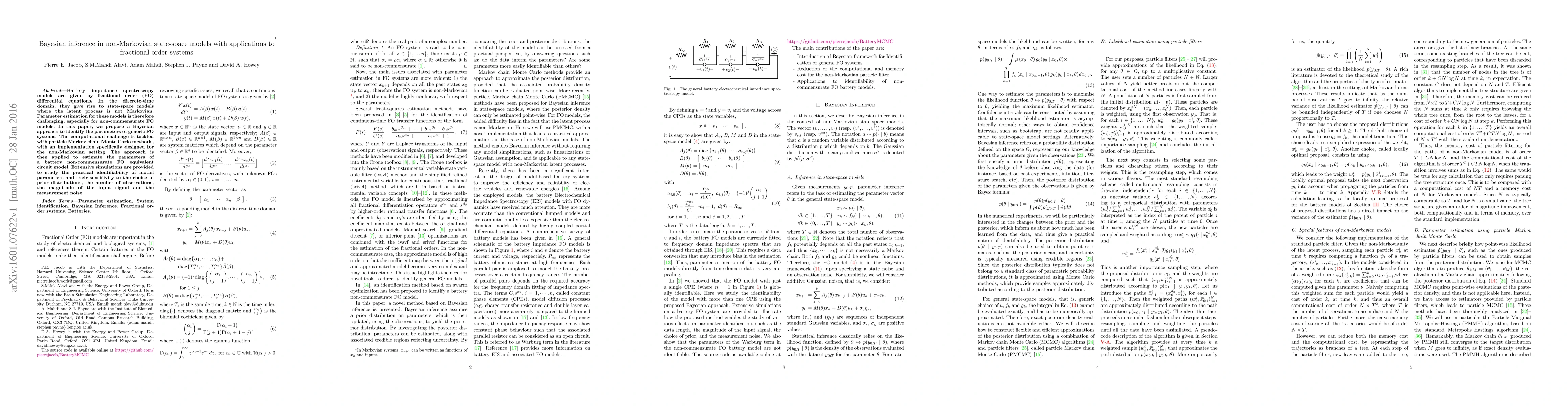 Researchers propose a Bayesian approach to estimate parameters of fractional order systems in battery impedance spectroscopy models, using particle Markov chain Monte Carlo methods to tackle the computational challenge.