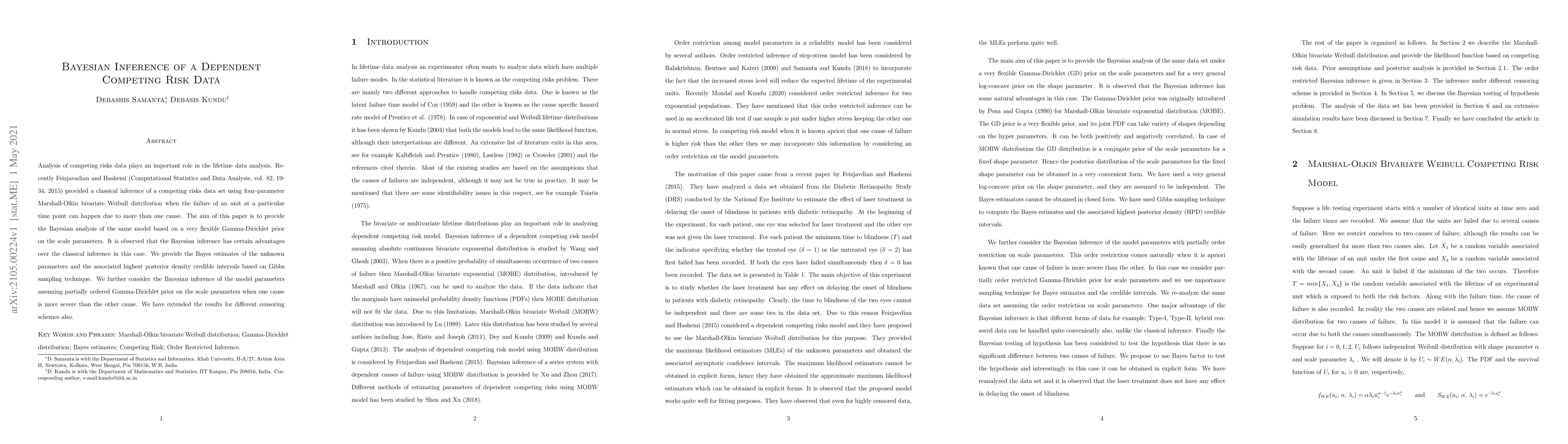 This paper presents Bayesian inference for a competing risks data set using a flexible Gamma-Dirichlet prior, offering advantages over classical inference methods. It provides Bayes estimates and credible intervals for model parameters.