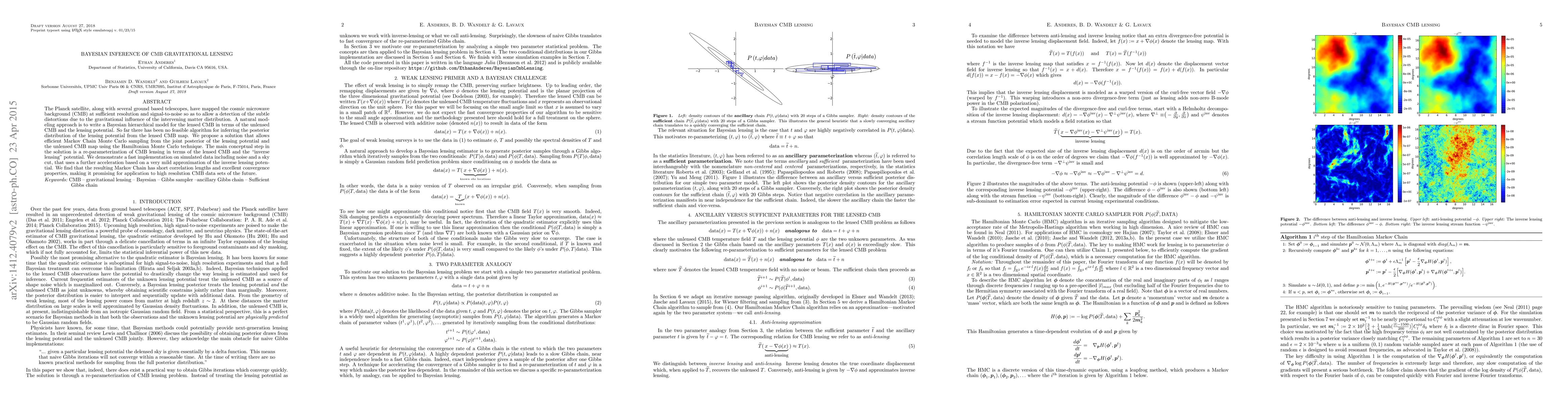This paper proposes a Bayesian hierarchical model and an efficient Hamiltonian Monte Carlo algorithm for inferring the gravitational lensing potential from the cosmic microwave background (CMB) data. The method re-parameterizes CMB lensing and demonstrates promising convergence properties on simulated data.