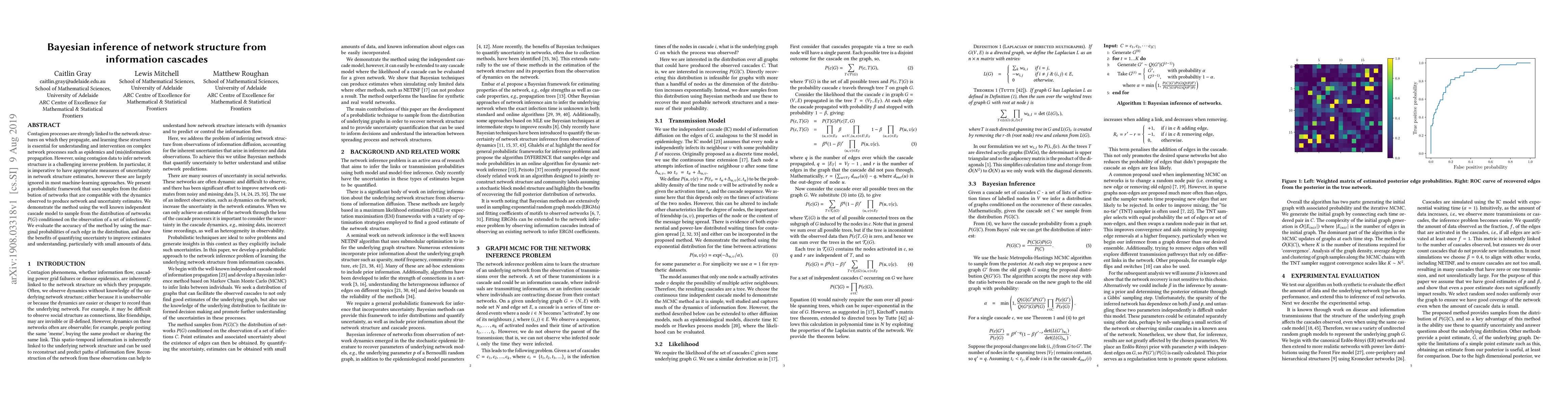 Researchers developed a method to infer network structure from information cascades using Bayesian inference, providing uncertainty estimates that improve understanding of complex processes like epidemics and misinformation propagation. The approach demonstrated accuracy in estimating network edges with small amounts of data.