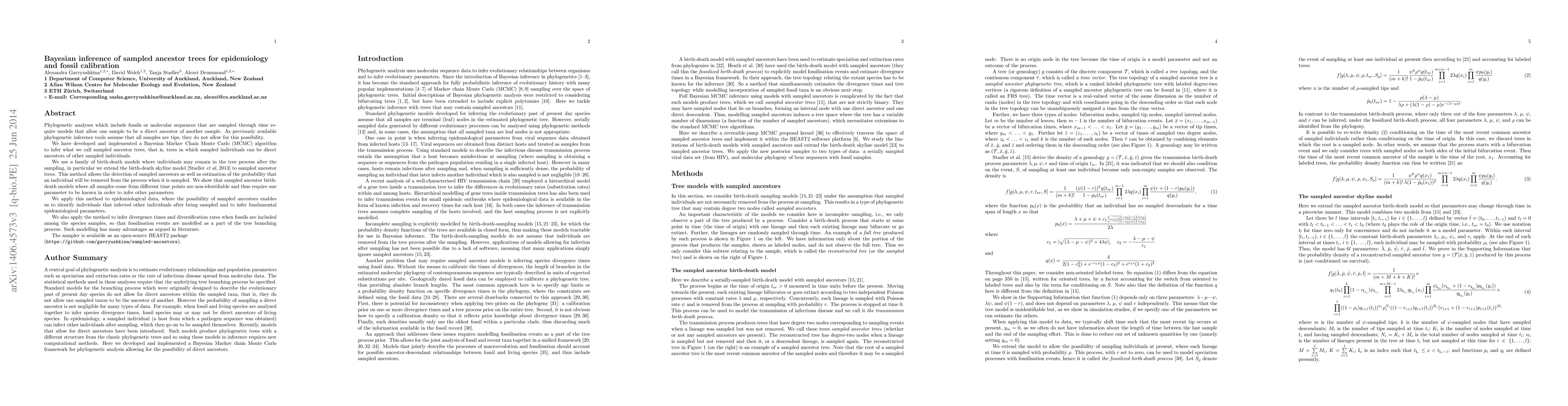 This paper introduces a Bayesian MCMC algorithm for inferring sampled ancestor trees, allowing sampled individuals to be direct ancestors of others, which is crucial for phylogenetic analyses involving fossils and temporally sampled sequences. The method extends the birth-death skyline model and is applied to epidemiological data and fossil calibration, offering insights into infection pathways and divergence times.
