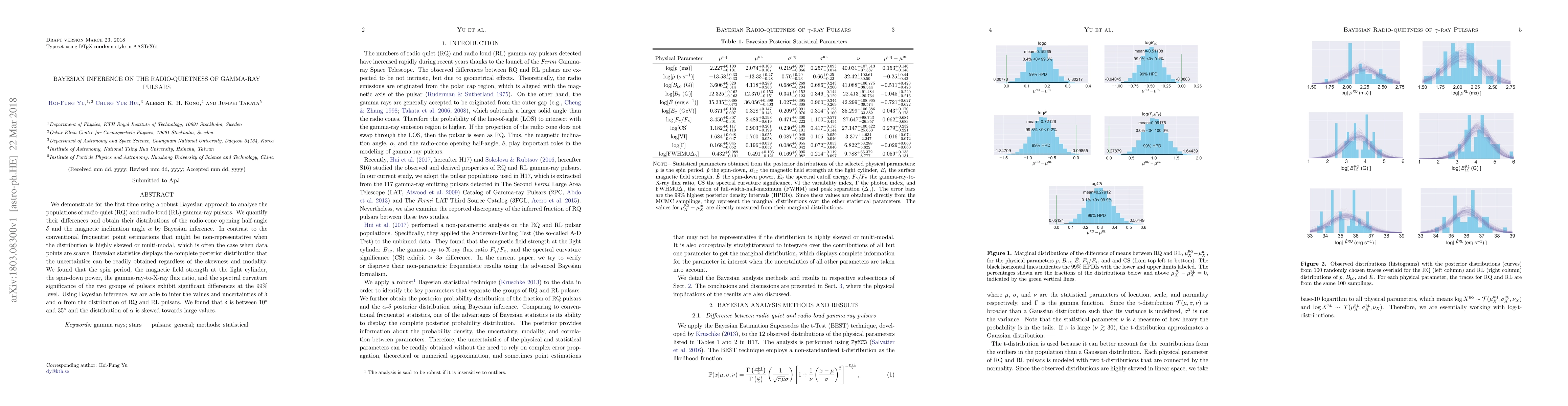 This paper employs Bayesian inference to analyze the populations of radio-quiet and radio-loud gamma-ray pulsars, revealing significant differences in their spin periods, magnetic field strengths, and other characteristics. Bayesian methods provide a complete posterior distribution, allowing for more accurate inferences and uncertainties compared to frequentist approaches.