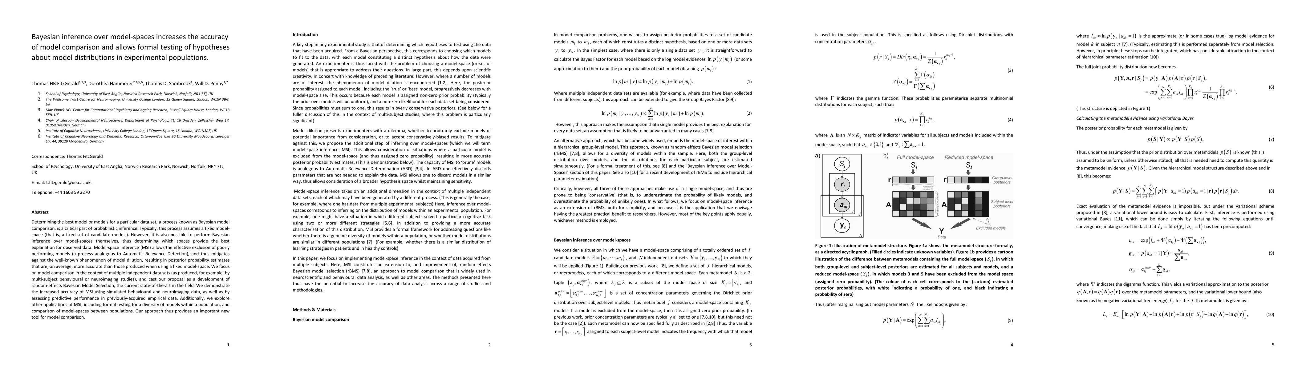 Determining the best model or models for a particular data set, a process known as Bayesian model comparison, is a critical part of probabilistic inference. Typically, this process assumes a fixed model-space (that is, a fixed set of candidate models). However, it is also possible to perform Bayesian inference over model-spaces themselves, thus determining which spaces provide the best explanation for observed data. Model-space inference (MSI) allows the effective exclusion of poorly performing models (a process analogous to Automatic Relevance Detection), and thus mitigates against the well-known phenomenon of model dilution, resulting in posterior probability estimates that are, on average, more accurate than those produced when using a fixed model-space. We focus on model comparison in the context of multiple independent data sets (as produced, for example, by multi-subject behavioural or neuroimaging studies), and cast our proposal as a development of random-effects Bayesian Model Selection, the current state-of-the-art in the field. We demonstrate the increased accuracy of MSI using simulated behavioural and neuroimaging data, as well as by assessing predictive performance in previously-acquired empirical data. Additionally, we explore other applications of MSI, including formal testing for a diversity of models within a population, and comparison of model-spaces between populations. Our approach thus provides an important new tool for model comparison.